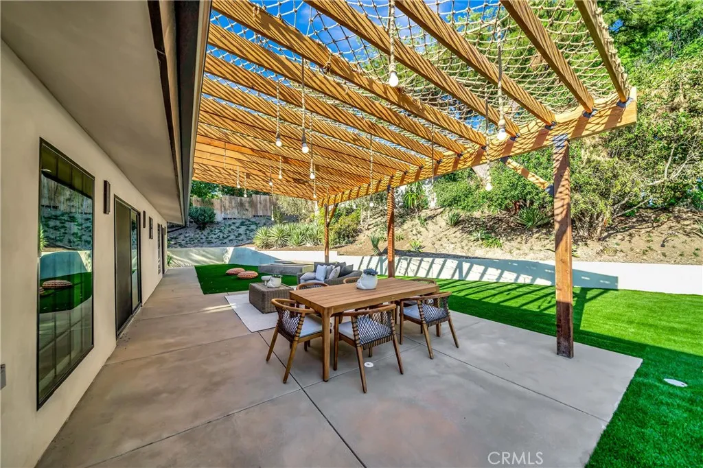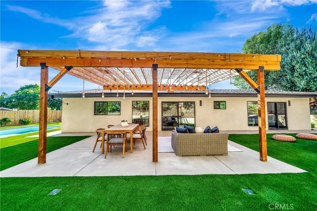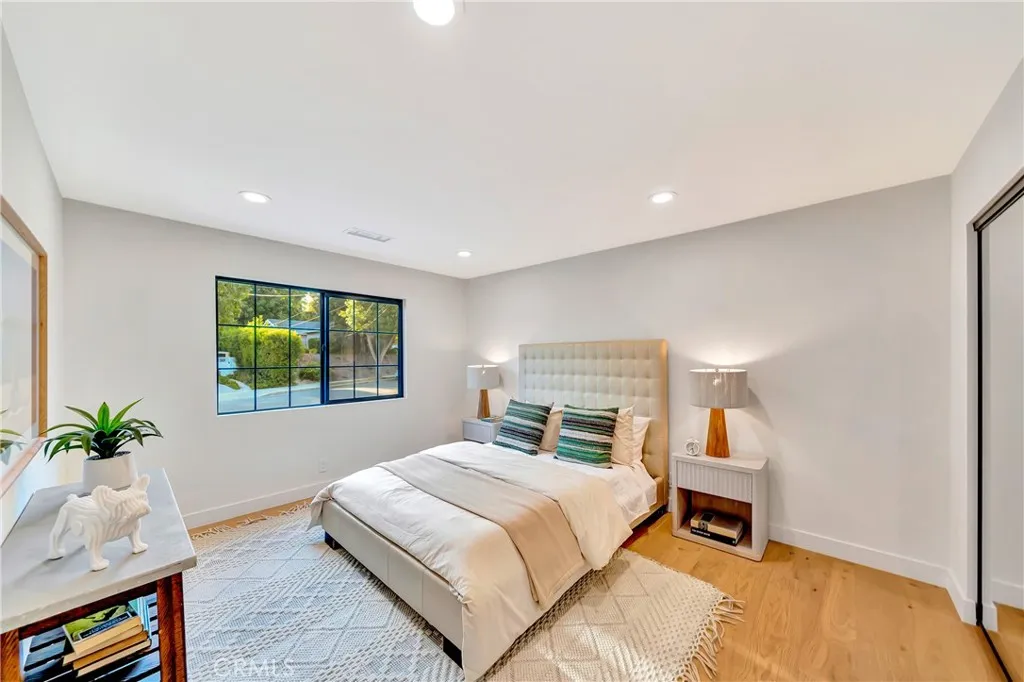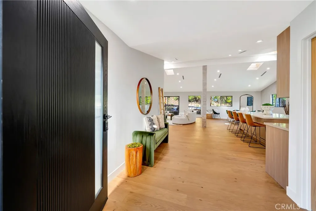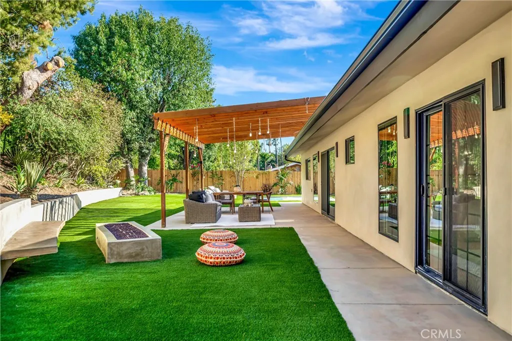 Set on a 14,165 sq. ft. flat and private lot in prime Woodland Hills, this stunning modern farmhouse offers the ultimate blend of luxury, space, and seclusion This fully remodeled and expanded modern farmhouse, with the required permits and OK for CofO, sits on a spacious, private flat lot and has been reimagined from top to bottom with luxury finishes and modern upgrades. Virtually everything is new, including pool, backyard, patio, electrical, plumbing, roofing, HVAC, and moremaking this home completely turnkey. The open-concept floor plan boasts vaulted ceilings, wide-plank water proof wood floors, skylights, and expansive black-framed windows that flood the home with natural light. The chefs kitchen features custom cabinetry, a stone waterfall island, high-end appliances, and a walk-in pantryopening to a spacious dining area and great room, ideal for entertaining. Retreat to the luxurious primary suite with vaulted ceilings, direct yard access, and a spa-like bath with dual vanities and a large walk-in shower. Three additional bedrooms, including a private mini suite, provide flexibility for family, guests, or office use. Step outside to a brand-new resort-style pool and spa, surrounded by a fully private backyard with smooth stucco Venetian-plaster walls. The redesigned outdoor space includes a turf play area and a covered patio/pergola lounge with string lighting and a built-in fire pitperfect for year-round entertaining. Additional highlights include two brand-new HVAC systems, smart-home upgrades, a dedicated laundry room, RV parking with full hookups being installe