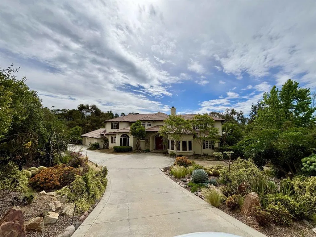 A rare renovation opportunity in one of North County San Diegos most prestigious communities. Set on a lush, private acre behind gates, this resort-style estate offers a level of scale, privacy, and presence that is increasingly hard to find. A long, elegant driveway welcomes you through the gated entrance, unveiling a tranquil compound framed by mature trees, expansive grounds, and a solar-heated pool, creating a true private oasis with peaceful canyon views. Spanning approximately 6,388 square feet, the residence showcases timeless architectural design. A dramatic entry opens to expansive living spaces, including a dedicated great room ideal for entertaining. The primary suite is a true sanctuary, featuring a private view deck with canyon vistas and a peekaboo ocean view, along with a dry sauna, serene reading room, library/office, and a spa-inspired bath with a soaking tub perfectly positioned to capture the surrounding natural beauty. This property offers a spacious downstairs suite with walk-in closet, ensuite bath, and direct access to the pool for family and guests. The resort-style grounds are the heart of the property, including a solar-heated pool and surrounded by lush, established landscaping, offering both privacy and a peaceful, retreat-like setting. This four-bedroom cosmetic fixer presents an exceptional value-add opportunity, offering incredible bones, premier location, and the chance to modernize and create a true legacy estate.