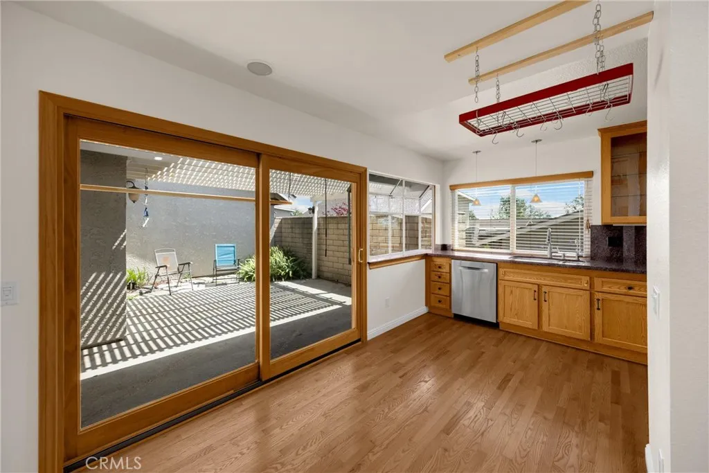 Location, Location, Location! This beautifully maintained single-story home is perfectly situated in North Upland within the highly sought-after Upland Knolls community, with shopping conveniently located within walking distance. This 3-bedroom, 2-bath home features an attached 2-car garage with direct access and offers a highly desirable single-level floor plan. The home showcases exquisite real wood floors that were recently refinished, fresh interior paint throughout, and new carpet in the guest bedroom. The third bedroom is currently being used as an office and can easily be converted back into a bedroom. Large windows provide abundant natural light, while elegant wood shutters offer privacy and light control. All appliances, including the washer and dryer, are includedmaking this home truly move-in ready. Step outside to your private patio with a lattice cover, creating the perfect space for relaxing, barbecuing, and entertaining. Residents enjoy community amenities including a pool, spa, and barbecue area. HOA dues conveniently cover water, trash, sewer, and exterior maintenance, including the roof and paint. Single-level homes are becoming more and more rarethis is truly a must-see property. Make this home yours!