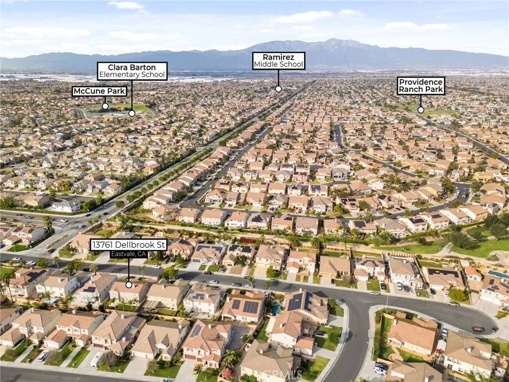 Welcome home to this beautifully maintained, original-owner Pulte-built residence in a desirable Eastvale neighborhood, showcasing high ceilings, tall doors, and a bright, open layout. With recently freshly painted exterior, this home offers standout curb appeal with lush landscaping, a charming front porch, and the rare convenience of two driveways and dual garages. Inside, youre welcomed by tile flooring, an open staircase, and spacious formal living and dining rooms. The inviting family room features a cozy fireplace, media niche, and large windows that fill the space with natural light, seamlessly connecting to the kitchen. The well-appointed kitchen includes granite countertops, abundant cabinetry, a walk-in pantry, and a butlers pantry, with sliding doors leading to the backyard. A main-floor bedroom and full bathroom, along with an indoor laundry room with sink and storage, add everyday convenience. Upstairs offers a thoughtfully designed layout with generously sized bedrooms, including a Jack-and-Jill bathroom setup, additional full bath with dual sinks, and a spacious primary suite featuring dual vanities, soaking tub, walk-in shower, and an oversized walk-in closet. Step outside to a backyard complete with a cement patio and expansive grassy area, ideal for entertaining or relaxing. Conveniently located near top-rated Eastvale schools, parks, shopping, dining, and major commuter routes. No HOA and no solar, providing added flexibility and value. This home offers the perfect blend of space, quality, and locationdont miss this opportunity!
