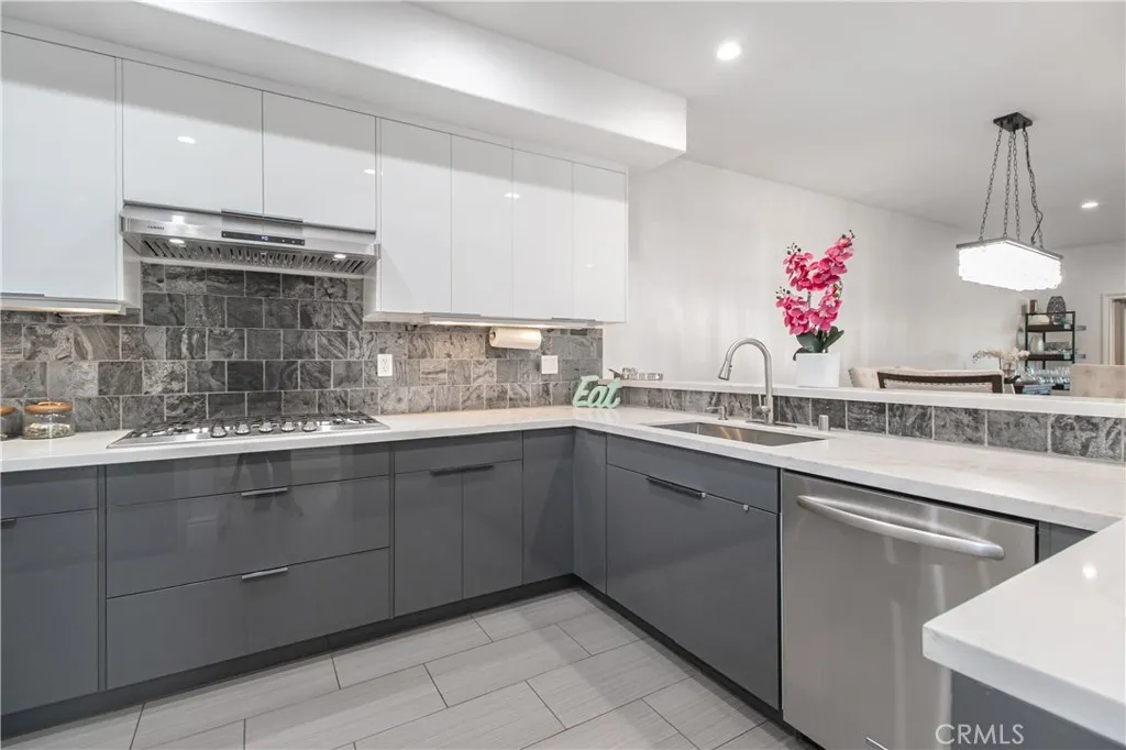 This beautifully updated unit offers three bedrooms and two-and-a-half bathrooms within the prestigious, gated Creekside community. An open-concept layout is highlighted by soaring vaulted ceilings and abundant natural light. The newly remodeled chefs kitchen features a spacious refrigerator, a professional five-burner range and cooktop, and views to the backyard and family room, all seamlessly flowing into the main living areas. The family room is anchored by a striking glass-burning fireplace, creating a warm yet modern focal point. A bright downstairs bedroom provides flexibility as a guest room or an ideal home office, complemented by an elegant powder room for guests. Upstairs, the primary suite is a true retreat, featuring a spa-inspired en-suite bathroom with a generous dressing area and an expansive open walk-in shower. The second upstairs bedroom, with its own luxurious en-suite bathroom, is generously sized and offers comfort, privacy, and versatility, making it ideal for guests or family members. French doors open to a private and serene backyard patio with an outdoor firepit, perfect for relaxing or entertaining. Additional highlights include a two-car garage with direct access, a separate laundry room, and a prime location just minutes from The Commons at Calabasas and Calabasas Lake. A rare opportunity to own a refined, turnkey residence in one of Calabasas most desirable communities.
