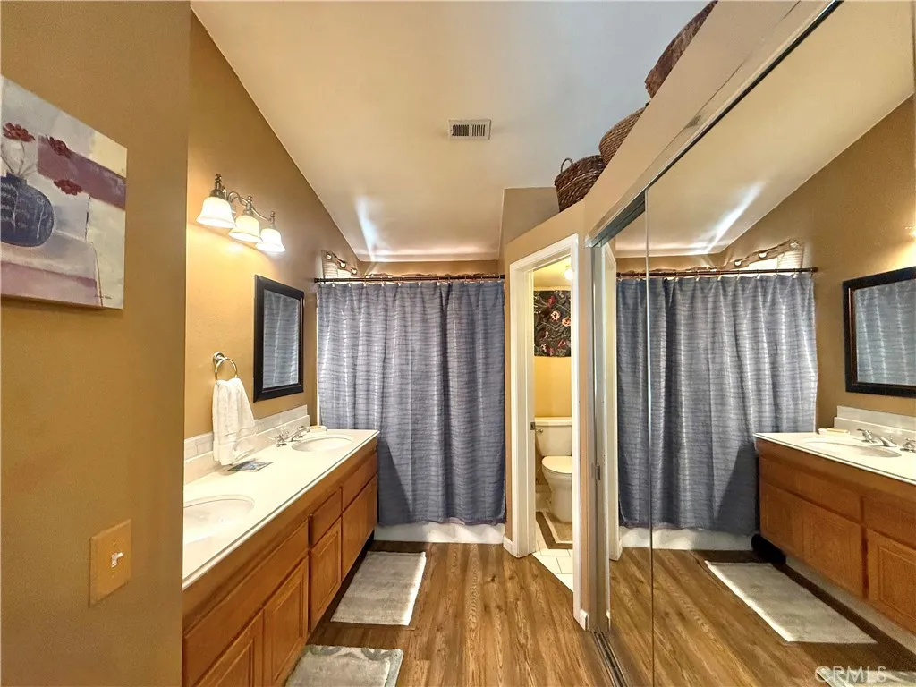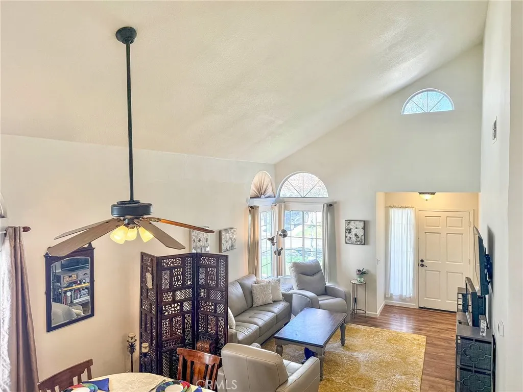 Welcome to this lovely home located in Rainbow Glen offering 3 bedrooms and 3 bathrooms, this recently refreshed home features a bright and functional layout designed for comfortable everyday living. Step inside to soaring vaulted ceilings in the living room and abundant natural light that create an open, airy feel throughout the main living spaces. The freshly painted interior enhances the homes clean, move-in-ready appeal, while large windows and elegant architectural details add warmth and charm. The bright kitchen showcases ample wood cabinetry, tile countertops, a stainless steel stove and hood, spacious pantry, and a large window overlooking the serene backyard. The family room is anchored by a brick fireplace complete with a wooden mantel and wood-like flooring. The guest bathroom features a new vanity, new faucet, and mirror. The home is equipped with heating and air conditioning for year-round comfort. Step outside to a private backyard retreat with mature trees and space for outdoor dining, gardening, or simply enjoying the peaceful surroundings. Additional highlights include no Mello-Roos tax, only six homes on the street, two dedicated parking spaces and access to community amenities, which include basketball courts, tennis courts, a playground, and pool. The HOA also maintains all front yards, keeping the grounds well maintained. Ready for you to call home, this property is ideally located near freeways, Metrolink, top rated elementary school, Costco, Walmart, Sky Zone, MB2 Entertainment, dining, offering both convenience and comfort.