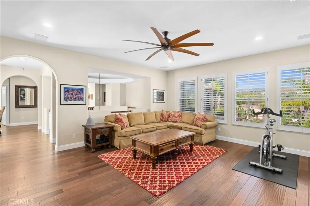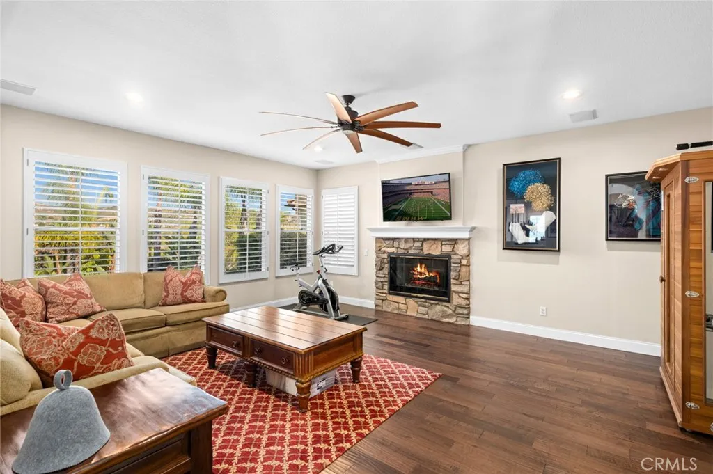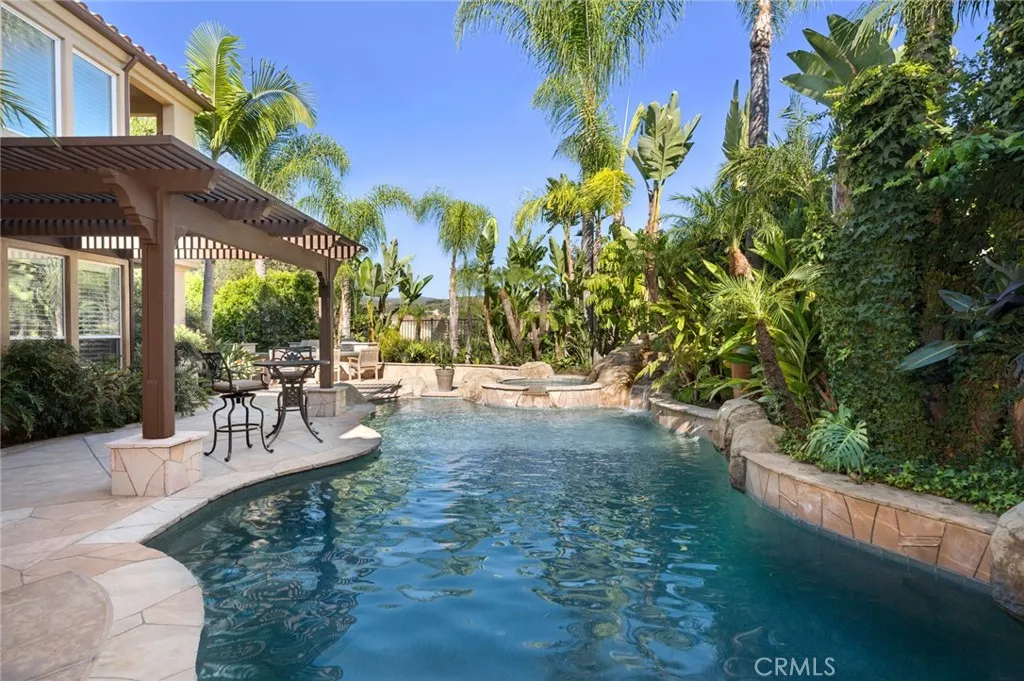 Welcome to 4 Golden Poppy in the prestigious guard-gated community of Coto de Caza, a beautiful home that offers an exceptional backyard oasis and a thoughtfully design floor plan that includes a large bonus room, together creating the ideal Southern California lifestyle. The main level is designed for both everyday comfort and effortless entertaining, featuring a gourmet kitchen with a massive center island, walk-in pantry, an abundance of cabinet space, and stainless steel appliances including a double oven. The kitchen opens seamlessly to the inviting family room, complete with a built-in entertainment center, creating the perfect gathering space. A formal living room with fireplace and an elegant dining room connected to the kitchen provide additional areas for hosting. A desirable main floor bedroom with en-suite bath offers flexibility for guests or multi-generational living. Upstairs, the expansive primary suite is a true retreat, offering a private sitting area ideal for a home office, nursery, or fitness space. Dual oversized walk-in closets and a spacious primary bath enhance the suites luxurious feel. Two additional secondary bedrooms include one with its own en-suite and walk-in closet, along with a full hallway bathroom. A large bonus room with fireplace provides endless possibilities as a media room, game room, or additional living space. Step outside to your private backyard oasis, where a resort-style rock pool and spa, built-in BBQ center, fire pit, and pergola create the ultimate setting for relaxation and entertaining year-round. This exceptional home off