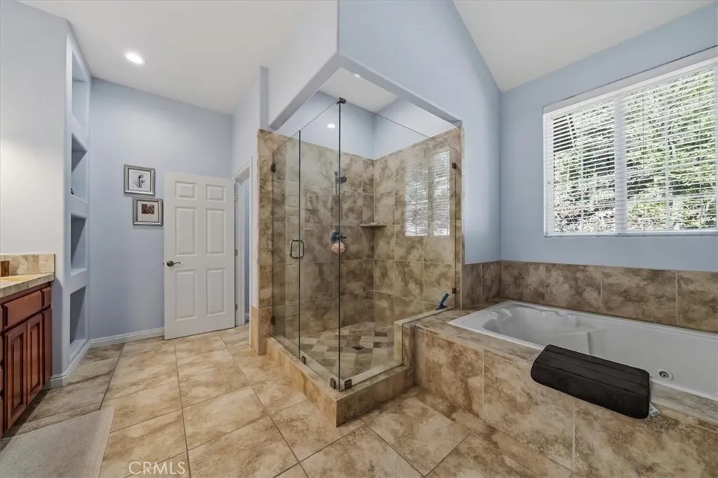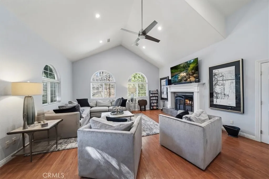 Experience elevated mountain living in this stunning Lake Arrowhead retreat, complete with coveted lake rights and an unbeatable location just a short stroll to Blue Jay Village shopping, dining, and the post office. Built in 2006, this expansive 4,178 SF residence offers 4 bedrooms, 4.5 bathrooms, a versatile den ideal as a 5th bedroom or home office, and a 2 car attached garage, an exceptional blend of space, comfort, and lifestyle in the San Bernardino Mountains. Step inside to discover a thoughtfully designed interior featuring two luxurious primary suites, each with spacious walk-in closets and spa inspired Jacuzzi soaking tubs, perfect for unwinding after a day in the mountains. The gourmet kitchen is both stylish and functional, showcasing a large center island, double oven, wine cooler, abundant cabinetry, and a walk-in pantry, ideal for entertaining and everyday living alike. Composite laminate flooring flows throughout the home, complemented by ceiling fans in every room for year round comfort. Dual zone air conditioning for both upstairs and downstairs levels adds a rare and valuable touch of modern convenience at this elevation. Designed with both comfort and peace of mind in mind, the home includes a full whole home generator, perfect for mountain weather, along with a generously sized laundry room complete with a built in sink and ample cabinetry. The property has been meticulously maintained and thoughtfully upgraded throughout. Nestled within the highly sought after Little Bear tract, known for its serene setting, towering pines, and low density charm, this