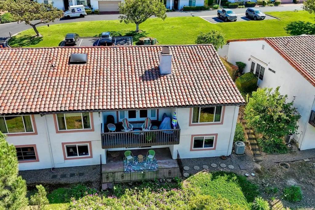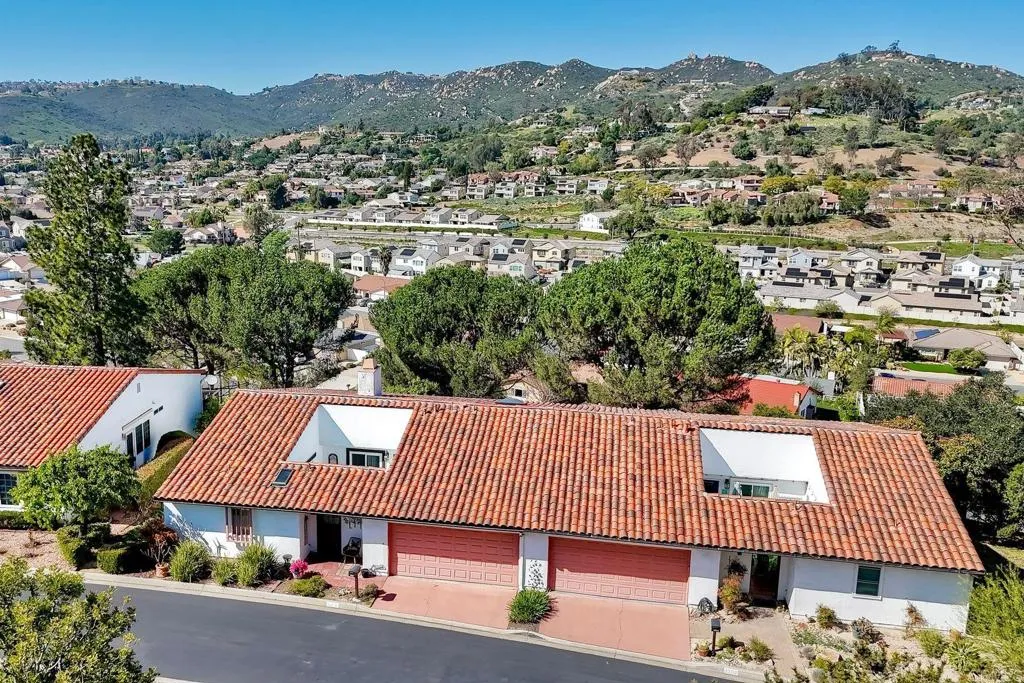 Welcome to this wonderful duet single-family home in Escondido, where flexible living meets timeless charm. Enter through a private atrium to a sun-drenched retreat for year-round enjoyment. This thoughtfully designed reverse two-story plan places the bedrooms on the lower level and the Primary suite on the main level, offering a unique and functional layout. The main living area impresses with a soaring ceiling and a seamless flow to a private deck overlooking a lush canopy of trees and hillside views. The beautifully appointed kitchen showcases a statement copper sink, a waterfall quartz countertop, and abundant storage. A dining room bar counter seats three comfortably, perfect for casual meals or entertaining. The main level is home to the Primary suite, a second bathroom, and a flexible den. The lower level offers a family room, an ensuite bedroom, and a third bedroom ideal for a home office. The family room gives access to a private patio. A two-car garage rounds out this home with generous storage space. Whether you prefer single-level or two-story living, this home effortlessly adapts to your lifestyle. The community features a pool, spa, and two tennis courts.