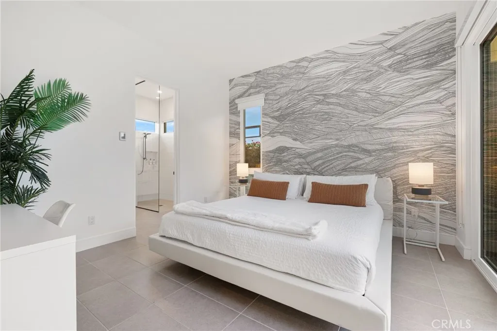 PRIME MIRALON RETREAT IN PALM SPRINGS. Designed for effortless desert living, this fully furnished, beautifully appointed, private pool home showcases an open-concept floor plan enhanced by bespoke finishes including a striking accent wall that offers modern sophistication to the main living space. Towering ceilings, expansive windows and sliding glass doors flood the interior with natural light, creating a bright and airy ambiance throughout. The chefs kitchen impresses with white quartz countertops, stainless steel appliances, white cabinetry, and generous island perfect for casual dining, meal prep and gatherings. Seamless flow between the kitchen and living areas makes the space ideal for everyday living and entertaining. The primary suite is thoughtfully designed for comfort and relaxation. The spa-inspired bathroom features dual sinks, contemporary finishes and curbless walk-in shower, offering a resort-like experience. Additional bedrooms provide flexibility for guests, or home office. Indoor-outdoor living is at the forefront of this homes design. Enjoy your own private oasis, where a sparkling spool invites you to cool off under the desert sun. Multiple patio areas offer options for dining, lounging, and entertaining, while the low-maintenance artificial turf adds year-round greenery. All of this set against breathtaking southern mountain views, delivering a serene and picturesque backdrop. Owned solar and short term rentals allowed (city regulations). Minutes from downtown Palm Springs, this home offers convenient access to vibrant dining, shopping, galleries and