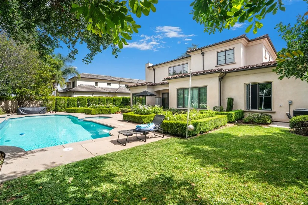Welcome to this stunning custom-built estate in the heart of Arcadia offering approximately 6,621 sq ft of living space on a generous 15,382 sq ft lot, completed in 2017. Behind a beautifully gated front yard, the home impresses with a paved driveway, manicured landscaping, and exceptional curb appeal. A grand marble foyer sets the tone, leading to an elegant formal living room and dining room on one side, and a refined study/library along with a private home theater on the other. Designed for both everyday living and upscale entertaining, the open-concept layout showcases a gourmet kitchen featuring high-end stainless steel appliances, a large center island, separate wok kitchen, and walk-in pantry. The inviting family room is complemented by a striking double glass-door wine cellar, creating the perfect setting for gatherings. Upstairs, four spacious bedrooms each offer en-suite bathrooms, while the luxurious primary suite features a spa-inspired bath with a soaking tub, separate steam shower, and an expansive walk-in closet. Step outside to a private, resort-style backyard designed for relaxation and entertaining, complete with a sparkling pool, soothing spa, and beautifully appointed patio area. Additional highlights include custom luxury furnishings included, and a prime location near parks, shopping, the library, and within the highly sought-after Arcadia Unified School District. This exceptional home offers the perfect blend of elegance, comfort, and lifestyle a rare opportunity not to be missed.