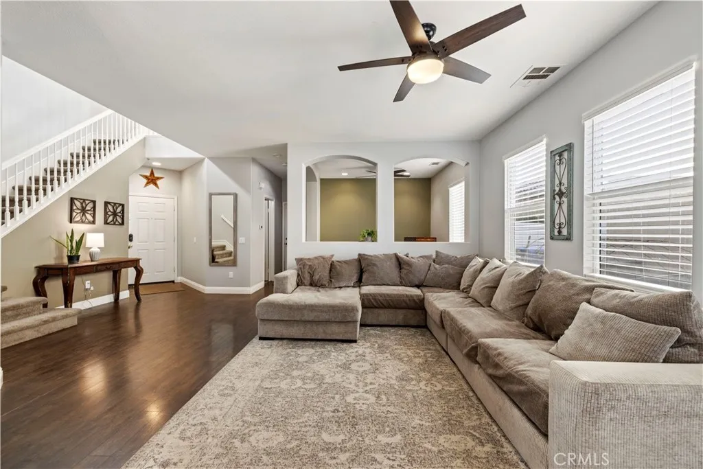 Welcome to 27641 Cordovan Drive, a spacious, well-maintained home in the sought-after Sienna Ridge community of Canyon Country. Owned and cared for by its original owners, this 4-bedroom, 3-bathroom home offers over 2,300 sq ft of functional living space designed for how people actually live today. Step inside to a bright, open living area anchored by a unique 3-sided gas fireplace that connects the living room and kitchen, creating a natural gathering space for everyday living and entertaining. The kitchen is both practical and inviting, featuring a center island, stainless steel appliances, generous cabinet storage, and a walk-in pantry, with plenty of room to cook, host, and stay organized. Downstairs, a versatile den sits adjacent to a full bathroom, offering the flexibility buyers are looking for, ideal as a home office, media room, or potential 5th bedroom. Upstairs, all four bedrooms are thoughtfully positioned for privacy. The primary suite offers a spacious layout, large walk-in closet, and an en-suite bath designed for comfort. A dedicated upstairs laundry room and bonus loft/office nook add convenience and flexibility to your daily routine. Step outside to a private backyard with a paved patio and oversized side yard. Perfect for entertaining, play, or simply enjoying the outdoors. Partial mountain views add to the appeal and remind you why Santa Clarita living is so desirable. Additional highlights include a 2-car garage with direct access, nearby cul-de-sac guest parking, and access to Sienna Ridge HOA amenities including a community pool, spa, and maintained g