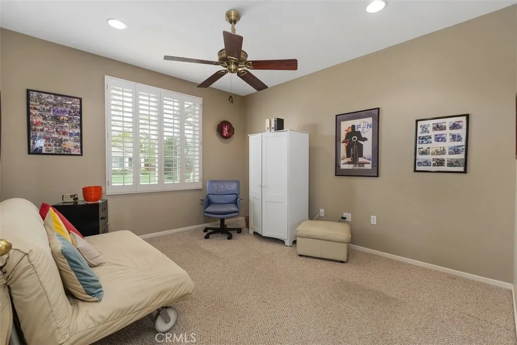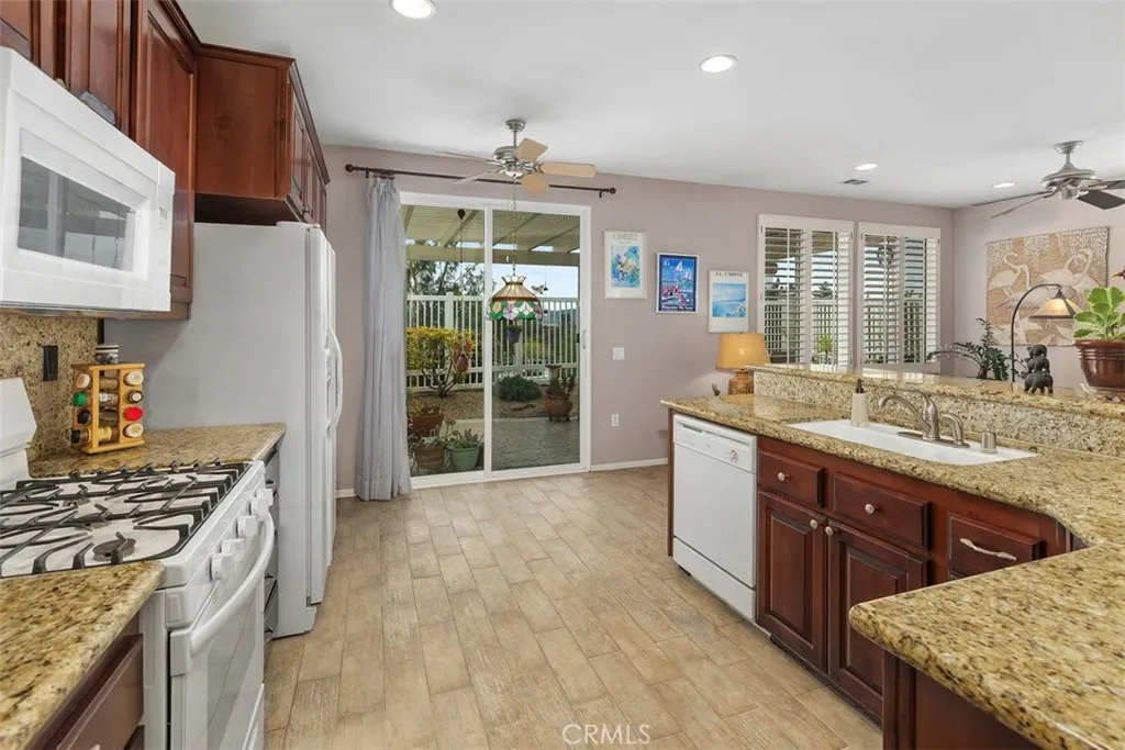 Welcome to this impeccably maintained, original-owner home located in the prestigious Four Seasons 55+ community of Murrieta. This spacious single-story residence offers 2 bedrooms plus an office, 2 bathrooms, and a thoughtfully designed open floor plan filled with natural light. The well-appointed kitchen features granite countertops, a breakfast bar, and a cozy eat-in nook, complemented by elegant plantation shutters throughout the home. Enjoy both a formal living room and separate dining area, along with a warm and inviting family room complete with a fireplaceperfect for relaxing or entertaining. The primary suite is a true retreat, offering two walk-in closets and a luxurious ensuite bath with a spacious walk-in shower and separate soaking tub. Two guest rooms are located at the front of the home, one currently configured as an office, with a conveniently situated guest bathroom featuring a shower/tub combination. Additional highlights include a generously sized laundry room with a deep sink and ample storage cabinetry, as well as a 2-car garage with an epoxy-coated floor and an upgraded tankless water heater. Step outside to a beautifully landscaped, low-maintenance backyard showcasing stamped concrete, an Alumawood patio cover, fruit trees, and breathtaking viewscreating a peaceful and private outdoor oasis ideal for entertaining or unwinding. Residents of Four Seasons Murrieta enjoy resort-style living with access to world-class amenities, including a 10-acre lodge featuring a heated pool and spa, fitness center, aerobics and dance studio, library, hobby rooms, beau