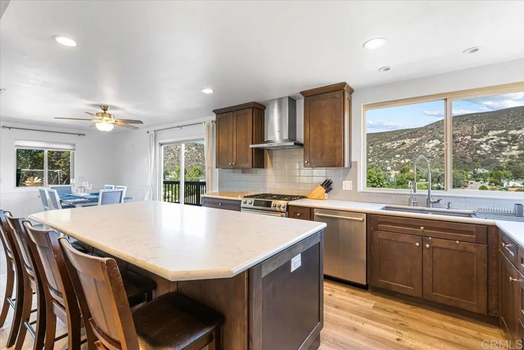 A beautifully positioned 3 bed, 2.5 bath home nestled in the scenic hills of San Diego Country Estates in Ramona, offering space, views, and incredible potential. Surrounded by mature landscaping and set on a picturesque lot, this home welcomes you with a layout designed for both everyday living and entertaining. The kitchen features Bosch stainless steel appliances, a large center island, and mountain views that make it the heart of the home. Step outside to a private backyard retreat complete with an expansive deck, spacious patio, custom pool, and pergolaperfect for enjoying panoramic views and San Diego sunsets. Additional highlights include a solar system to help offset energy costs and generous indoor-outdoor living spaces throughout. This is a rare opportunity to own a view property in San Diego Country Estates with strong upside and long-term value. Subject to short sale approval. Buyer to qualify for and assume existing solar lease.