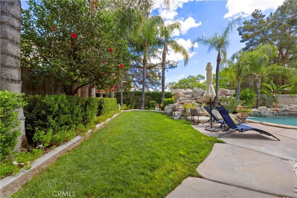 Highly upgraded South Corona Pool/Spa home featuring 4 Bedrooms and 3 bathrooms, including a downstairs bedroom and bathroom. Upgraded kitchen is a chef's delight with granite countertops, stainless steel appliances and new tile flooring that opens up to the family room with custom stack stone fireplace -- perfect for entertaining. The primary suite with French doors to balcony, large bathroom with soaking tub and walk-in closets with custom built-ins. Resort-style backyard with a spectacular rock pool/spa, waterfall, slide, firepit, covered patio, balcony, and built-in BBQ -- perfect for family time or entertaining guest. The front yard makes a striking first impression with mature palm trees, flagstone walls with accent lighting, and convenient RV parking. This home is located in walking distance to Santiago high school. This home won't last long, see it today as it will be gone tomorrow.