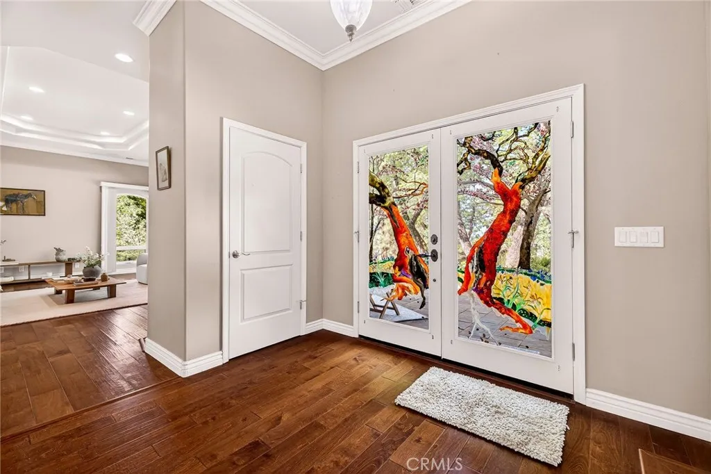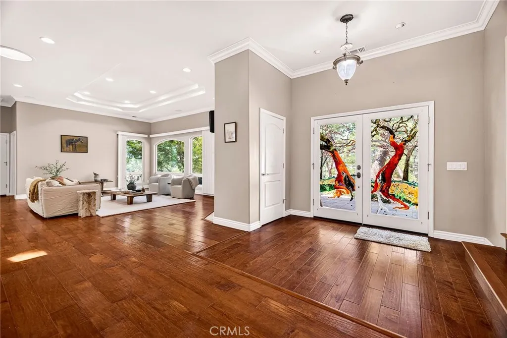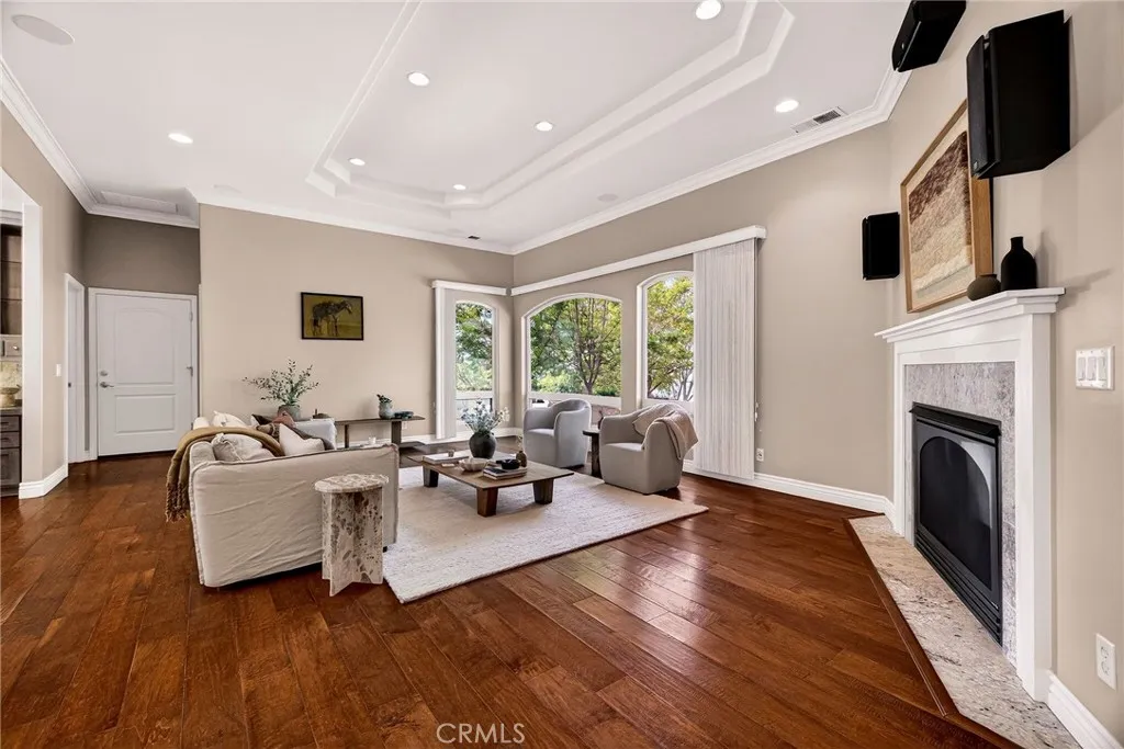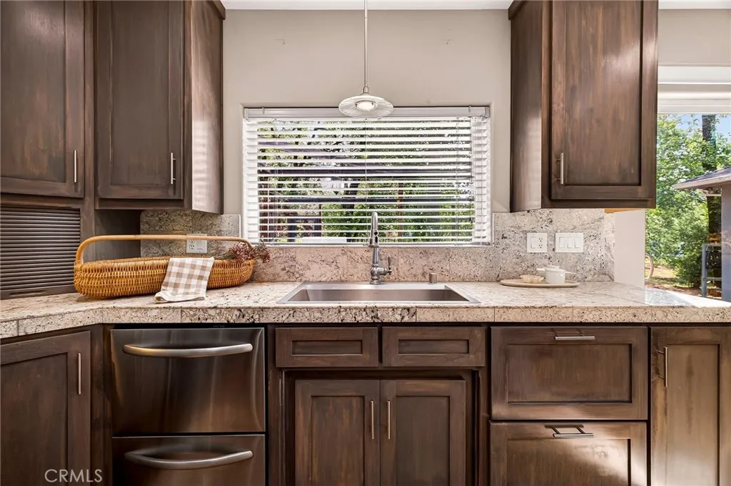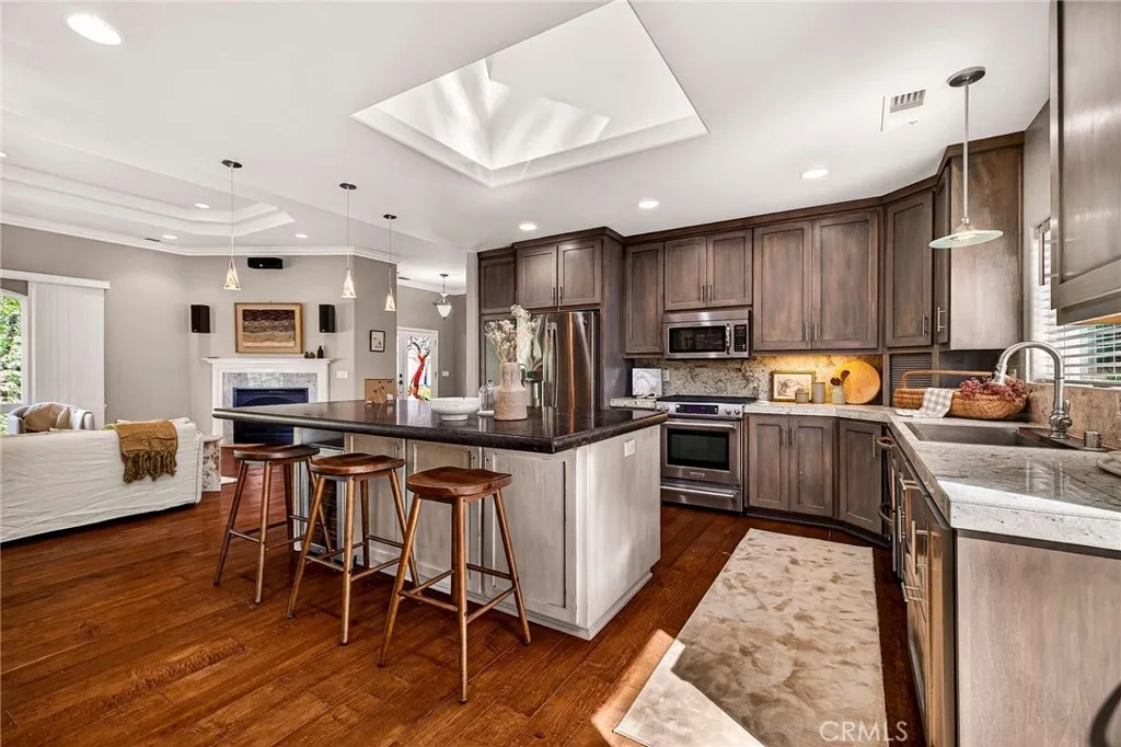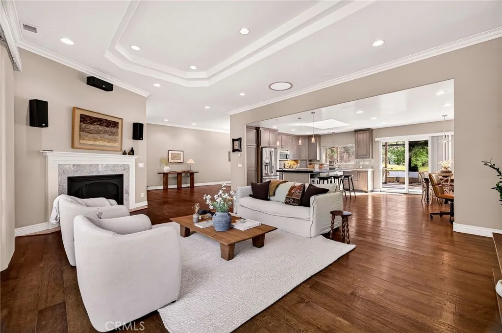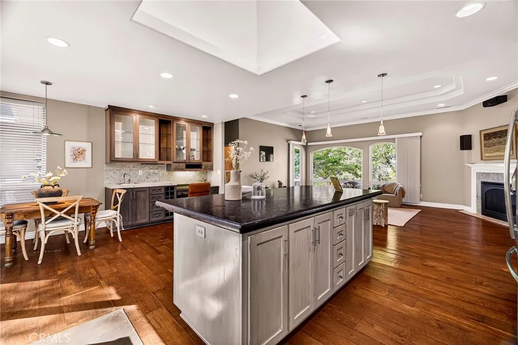 Experience understated elegance in this exceptional home, perfectly situated within an exclusive gated community offering resort-style amenities, including a pool and private storage. Designed with comfort and sophistication in mind, the open-concept floor plan showcases smooth wall finishes and exquisite, thoughtfully curated updates throughout. The great room exudes warmth and style with its granite-tiled fireplace and integrated surround sound systeman inviting space ideal for both intimate evenings and elegant entertaining. The gourmet kitchen is a chefs dream, featuring a striking leather granite island, granite tile countertops, a gas cooktop, oversized single-basin sink, appliance garage, and abundant custom cabinetry with pull-out drawers. A dedicated bar and desk area seamlessly merge functionality and design. The primary suite offers a true sanctuarycomplete with its own fireplace, custom reading lights, and a spa-inspired bathroom appointed with granite surfaces, dual vanities, and a private sauna. Rich wood flooring extends through the main living areas and primary suite, creating timeless continuity and warmth. Additional highlights include two whole house fans, pre-plumbing for a water softener, and a fully customized garage with an oversized RV bay designed to accommodate the most discerning enthusiast. Outdoors, an entertainers paradise awaits: a fully equipped outdoor kitchen and expansive patio provide the perfect backdrop for gatherings or quiet reflection. A rare offering that blends luxury, comfort, and craftsmanshipthis remarkable residence must be exp