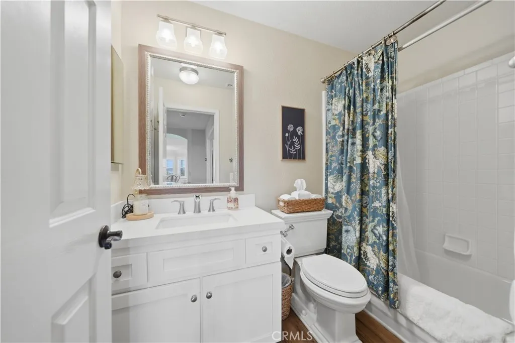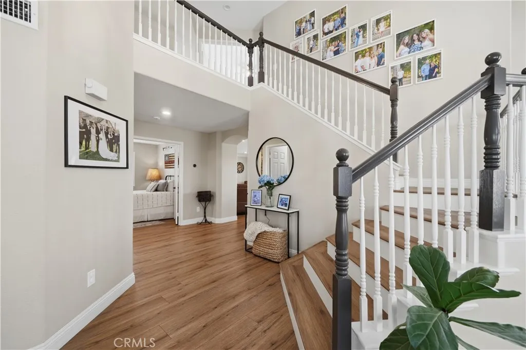 Situated on a quiet cul-de-sac in the highly sought-after Vintage Hills community of South Temecula, this immaculate 5-bedroom, 3-bath home offers 2,590 square feet of beautifully upgraded living space on an expansive lotjust minutes from Temecula Wine Country. With sweeping, unobstructed valley views, this home delivers the kind of setting that never gets old. From the moment you arrive, a large neighbor-friendly front porch sets the tone. Step inside to a grand entry with soaring cathedral ceilings, where natural light and an open layout create an immediate sense of space. The formal living room flows seamlessly into the dining room, leading you into a fully upgraded kitchen that truly serves as the heart of the home. Designed with both style and function, this kitchen features a large center island, natural stone countertops and backsplash, under-cabinet lighting, soft-close cabinetry, high-end stainless steel appliances, and a separate beverage fridgeperfect for entertaining. The adjacent breakfast nook, framed by bay windows, offers beautiful views of the backyard and beyond. The kitchen opens to a warm and inviting family room with a cozy fireplace and direct access to the outdoor patio, creating an ideal indoor-outdoor living experience. A main-level bedroom and full bath provide flexibility for guests, multi-generational living, or a home office. Upstairs, the primary suite is a true retreat, complete with a private balcony overlooking the valleyan ideal spot to unwind and take in the views. The fully renovated primary bath showcases an enlarged walk-in shower with