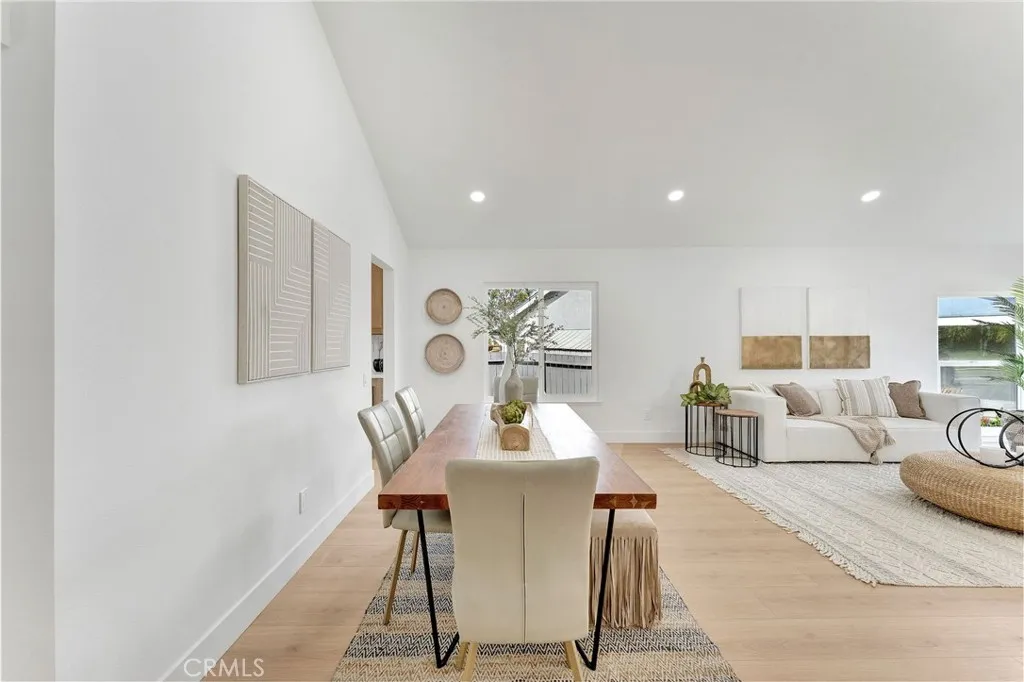 Remodeled 4-bedroom, 3-bath home in Lake Forest featuring an open-concept layout, vaulted ceilings, and abundant natural light. Updated kitchen with quartz counters and custom cabinetry opens to spacious living areas with a fireplace and built-in dry bar. Stylishly upgraded bathrooms, including a dual vanity primary suite. Private backyard and close to parks, schools, and shopping.