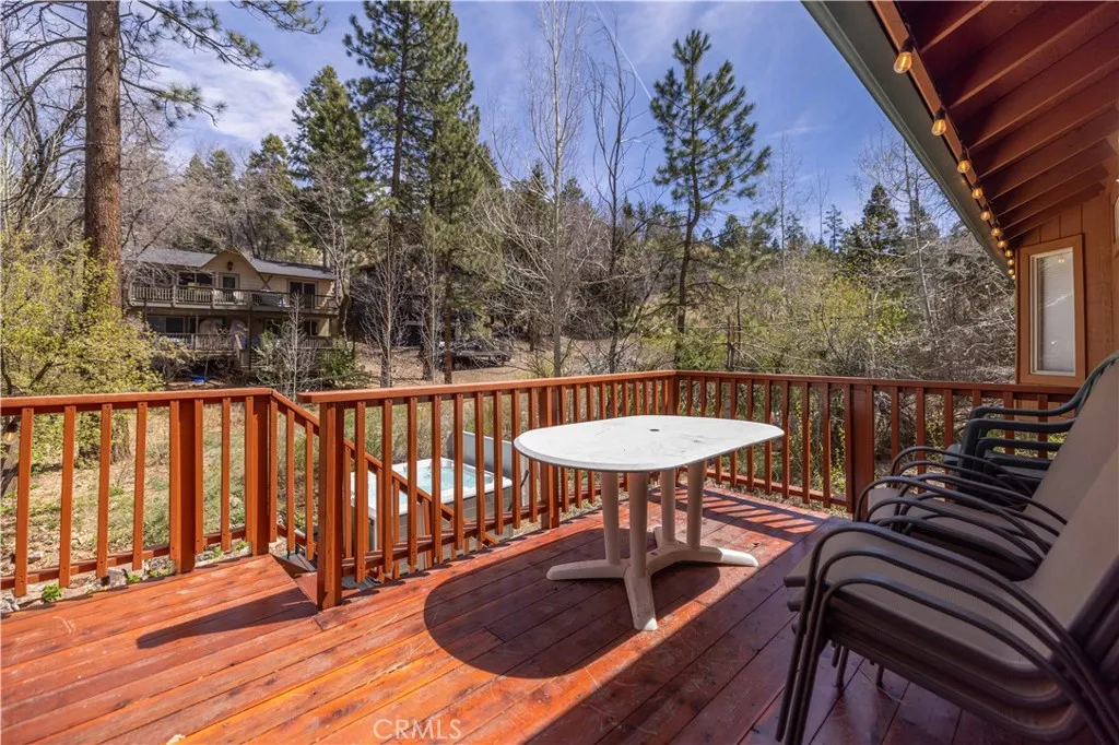 Tucked away in a serene mountain setting, this charming Moonridge retreat offers the perfect blend of privacy, comfort, and natural beauty. Surrounded by pine, aspen, and oak trees, the experience between indoor living and outdoor adventure is seamless. The home invites you to unwind while still being just minutes from the lake, ski slopes, hiking trails, and village shops. Inside, youll find a warm and inviting interior featuring an open-concept living space with vaulted ceilings, abundant natural light, and a cozy fireplaceideal for relaxing after a day of adventure. The kitchen is well-appointed with ample cabinetry and counter space, making it easy to entertain family and friends. This home offers spacious bedrooms along with well-maintained bathrooms and thoughtful touches throughout. Step outside to enjoy expansive decks and outdoor living areas, perfect for morning coffee, evening stargazing, or soaking in the peaceful forest surroundings. 220 electric for the spa in the backyard and in the garage for electric vehicle charging. This home is extremely well-kept and turnkey. This is one you don't want to miss!