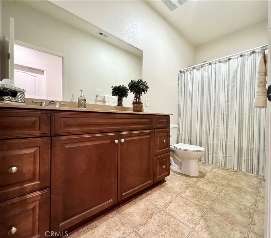 PAID-OFF SOLAR and RV PARKING! Welcome to this beautifully maintained Menifee home offering space, functionality, and an ideal location with very low HOA. Tucked away from busy main roads yet conveniently close to schools and parks, this property offers the perfect balance of privacy and accessibility. From the moment you arrive, youll appreciate the expansive driveway and impressive tandem garageapproximately 33 feet longdesigned to accommodate up to four midsize vehicles with ease. RV access and parking add even more flexibility for your lifestyle and storage needs. Inside, the home features 9 ft ceilings that enhance the open and airy feel throughout, along with 4 spacious bedrooms and 5 bathrooms thoughtfully designed for comfort and convenience. The primary suite serves as a relaxing retreat, complete with dual sinks, a separate shower, and a soaking tub. The hallway bathroom is a full bath with dual sinks and a shower/tub combination, while a convenient bathroom at the front of the home includes a stand-up shower, sink, and toiletperfect for guests. The interior showcases a blend of carpet and vinyl flooring throughout, creating a warm and practical living environment. Pride of ownership shines through as the seller is the original and only owner who has meticulously cared for the property. This is a rare opportunity to own a solar-powered, move-in ready home with generous parking, space, and a desirable Menifee location.