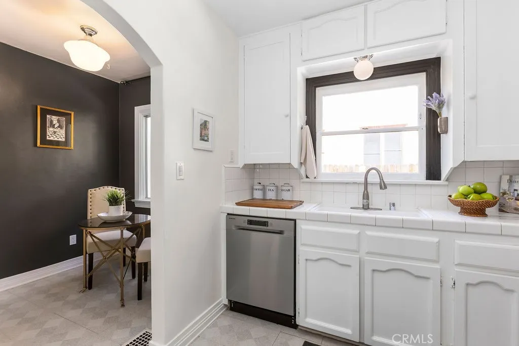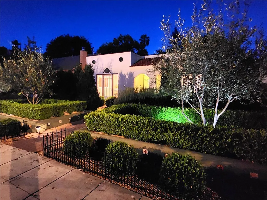 Simply Magical! This vintage Spanish-style is beautifully preserved from a bygone era, blending timeless character with thoughtful modern updates. Meticulous landscaping and raised planter with Spanish inlay guide you to a welcoming front porch, covered in Ludowici roof tile and complemented by a private sitting area framed by mature juniper for added privacy. This 3-bedroom, 1 spacious bathroom with dual sinks and custom tile, offers old-world charm at every turn. Enter and you will be greeted with a light filled living room anchored by a classic brick fireplace and dramatic floor-to-ceiling windows. The formal dining room continues the elegance with matching windows and a vintage statement light fixture. The kitchen is both charming and functional, offering new stainless-steel appliances (including refrigerator) and a cozy breakfast room with a built-in-buffet. A separate laundry room just off the kitchen includes a new washer and dryer, along with direct access to the driveway. Outside the property continues to shine. A long driveway leads to a single car detached garage and a grand garden archway that opens to a serene backyard retreat! Enjoy a terracotta tile-covered patio with a rustic teak dining table seating eight, while flagstone pathways wind through lush, raised garden beds and a tranquil water feature - all surrounded by mature foliage for ultimate privacy. Additional amenities: hardwood flooring; architectural plans to add bathroom + remodel kitchen and laundry without expanding the homes footprint; 2021 - central air conditioning, seismic foundation retrofit