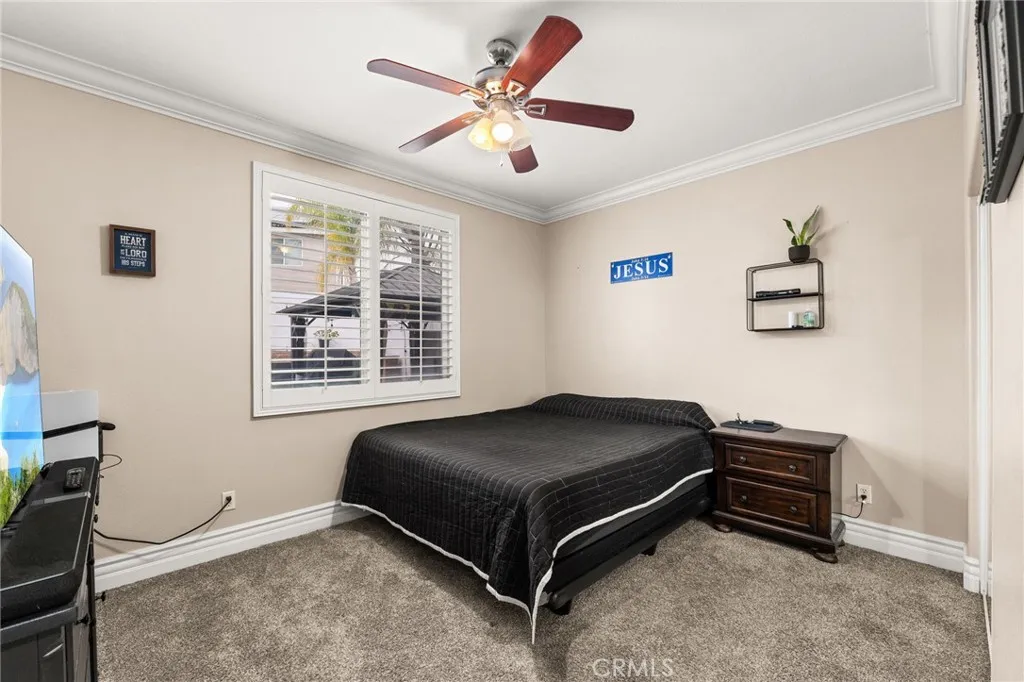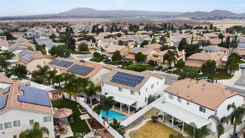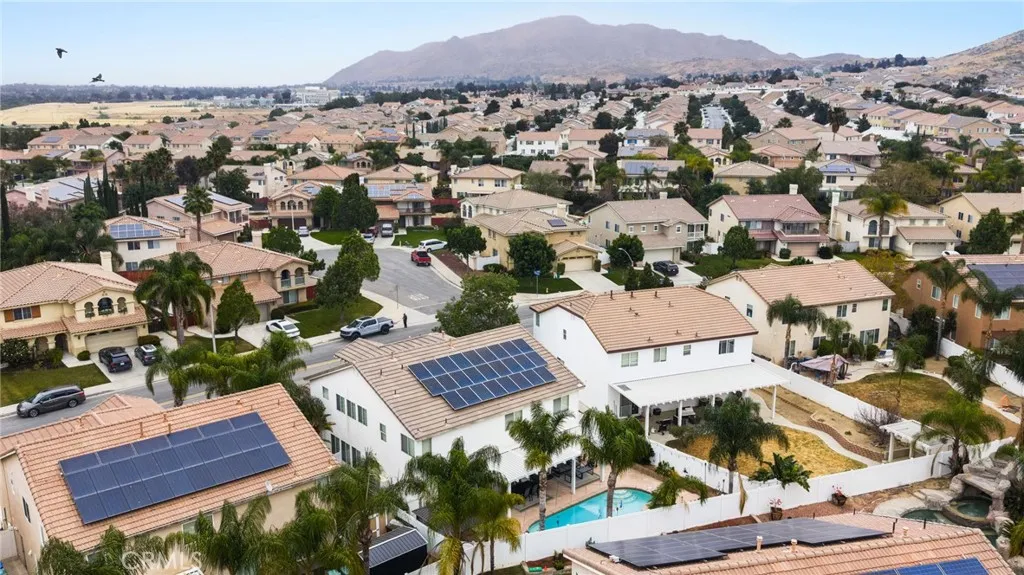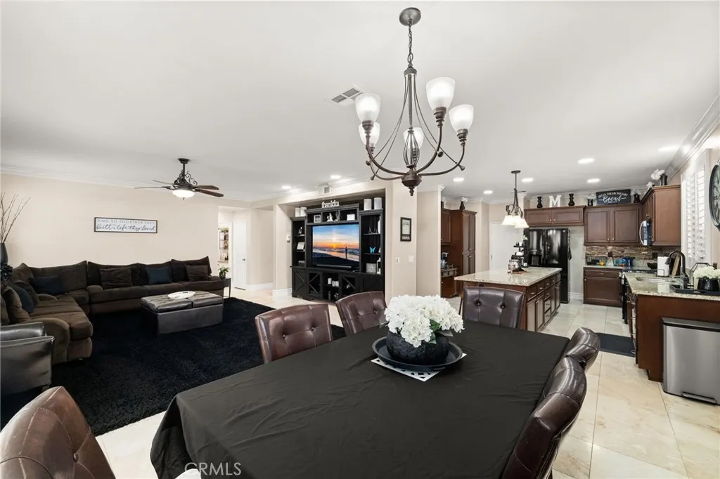 Welcome to this spacious and beautifully upgraded five-bedroom, three-bathroom home, thoughtfully designed for both comfort and functionality. In addition to the generously sized bedrooms, including The Master Bedroom that offers a bedroom-sized retreat that can be turned into a 6th bedroom. This home also features a dedicated officeperfect for working from home or creating a quiet retreat. Upstairs, youll find an oversized loft that offers incredible versatility, ideal as a playroom, game room, or even a private movie theater space. The open layout provides plenty of room for entertaining and everyday living. Step outside to your own backyard oasis, complete with a sparkling pool and an extended patioperfect for hosting gatherings or relaxing in the California sunshine. This home also boasts a three-car garage and a widened driveway with additional concrete, offering ample parking and convenience. With numerous upgrades throughout, this property combines style, space, and practicalitymaking it the perfect place to call home. Book your showing today!