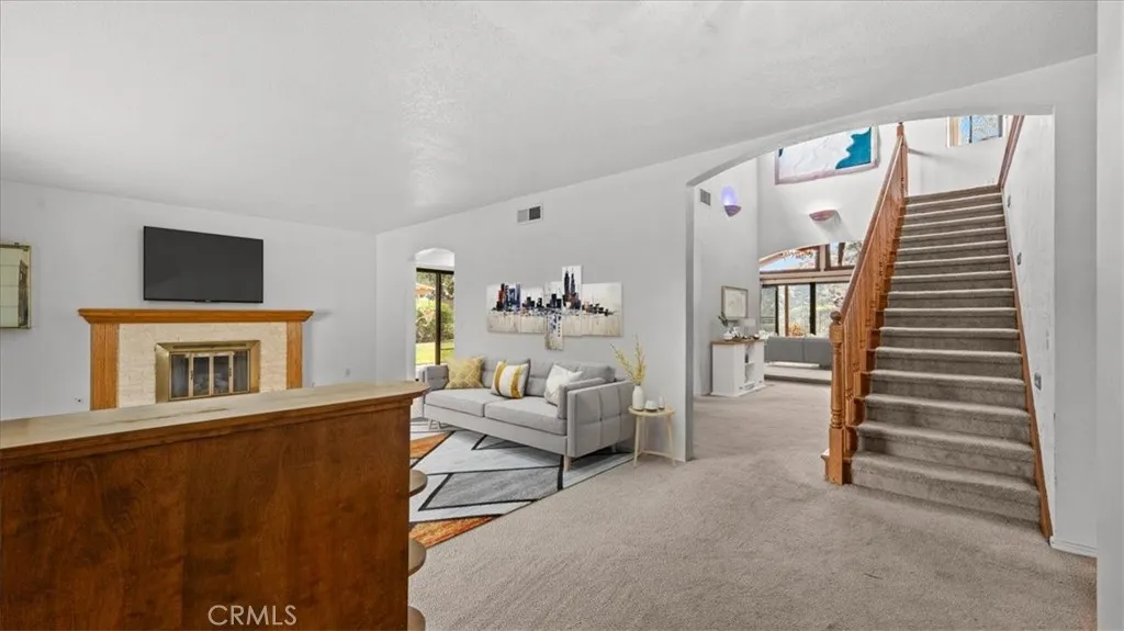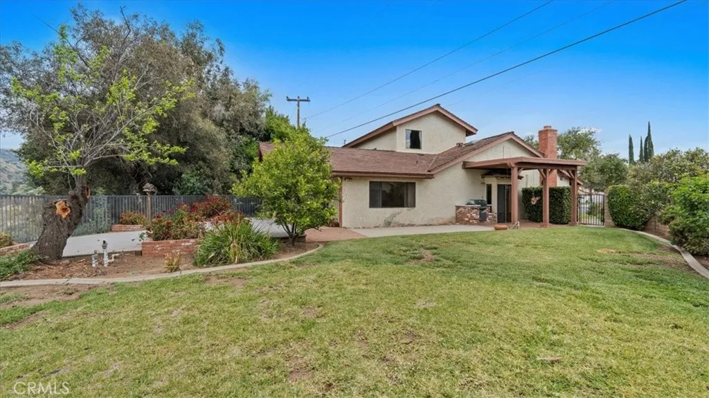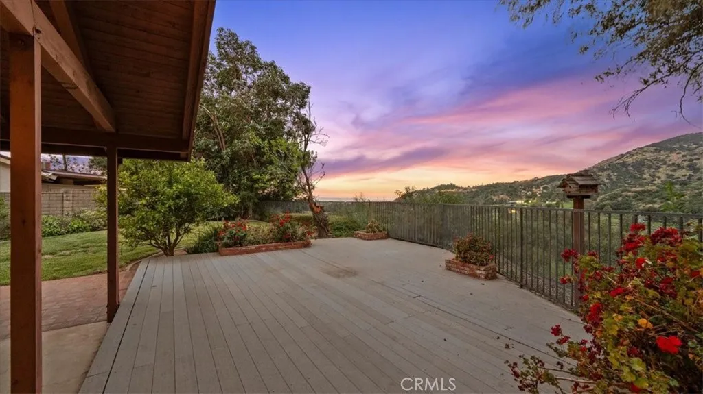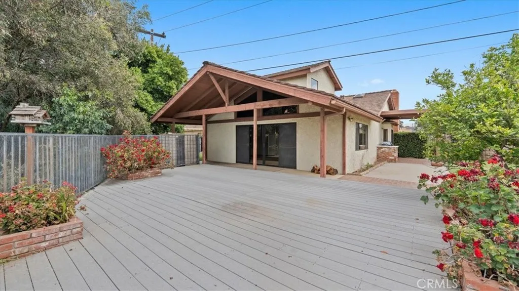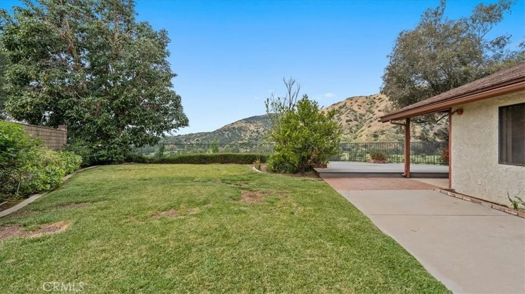 This view home will not last! The golf course and sunset views are spectacular! Welcome to one of the most coveted locations in all of the North La Verne Hillside. You will be delighted the moment you pull up to this warm, Spanish-style residence, with its arched entryway, handsome brick-paver driveway, and a striking wood pergola courtyard that sets the tone before you ever step inside. Enter and discover a spacious living room anchored by a wood-paneled fireplace surround and a graceful staircase leading to the home's true showpiece: a dramatic loft and game room with soaring vaulted ceilings, exposed wood beam detail, and a second brick fireplace. This is a room unlike anything the neighbors have. The kitchen features warm wood cabinetry, tile countertops, and a functional layout with an adjoining dining area open to the great room. The bedrooms are well-proportioned, clean, and quiet, with windows framing the surrounding hillside. The home is in original condition and immaculately presented throughout. Pride of ownership shows in every room. Step into the backyard and prepare to stop what you are doing. A substantial covered patio and generous deck area flow onto an expansive green lawn. The elevated position delivers open sky in every direction. The fairways of the San Dimas Canyon Golf Club stretch across your full sightline, and the sunsets here earn their own audience every evening. The second-story balcony offers another vantage point that you will often return to. The aerial photography confirms what the address promises: this home sits perched high above the vall