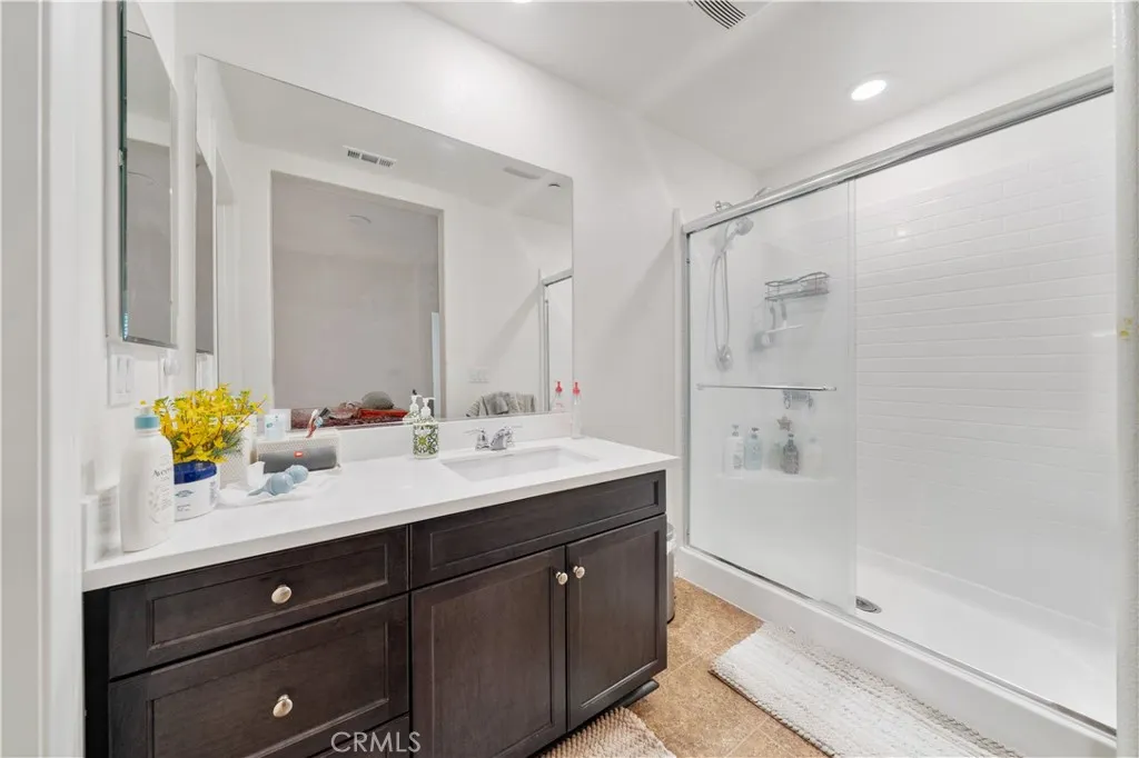 Spacious and well appointed 4 bedroom (3 up & 1 down), 4 bathroom home in the Aboretum community in Fontana near the 15 freeway. The home boasts a formal living room and family room with fireplace, a modern kitchen with island and adjacent dining area, and a large primary bedroom with walk-in closet and private bath. Other amenities include a laundry room, dual central air and heat, 3 car tandem garage and private yard.