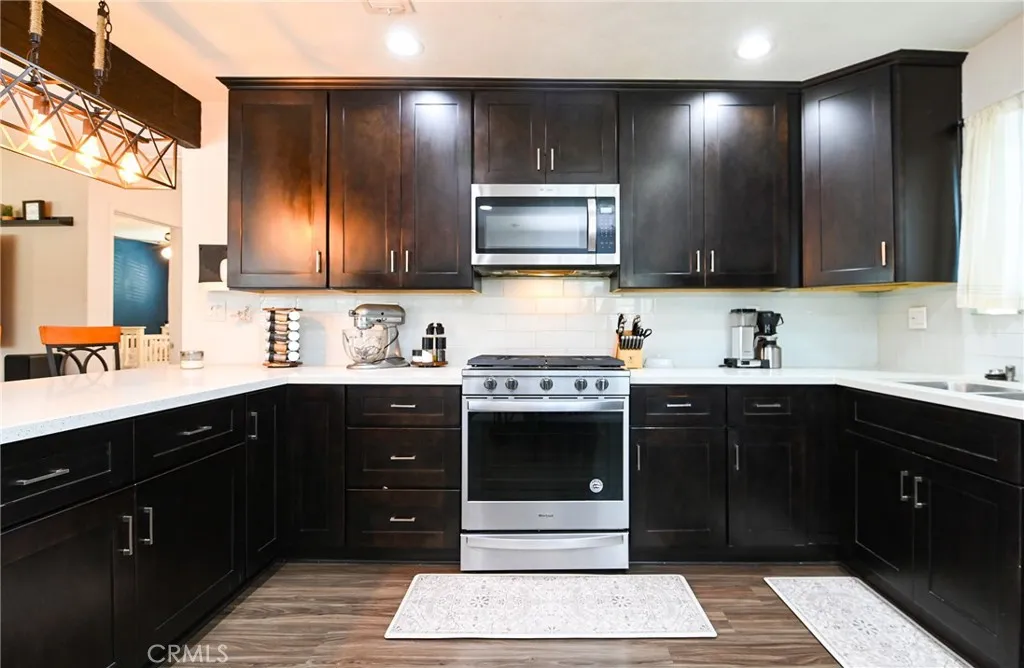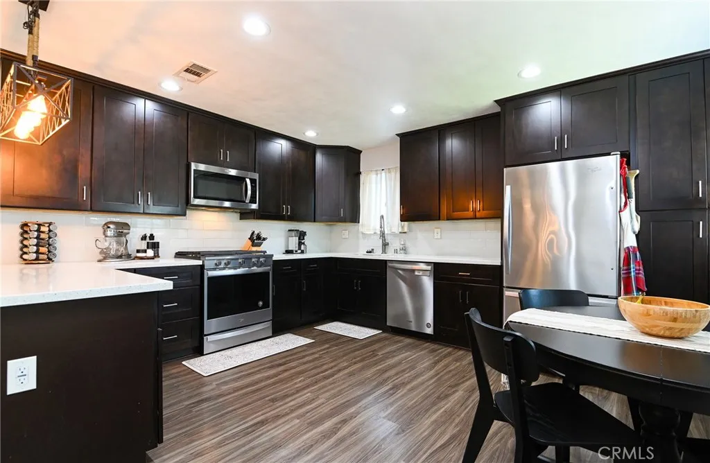 Welcome to 14322 Tedford Drive in Whittier, a thoughtfully upgraded home that blends comfort, functionality, and modern improvements throughout. Since 2020, the property has seen significant upgrades including copper plumbing, dual-pane windows, a new roof, a heat pump HVAC system, and refreshed exterior paint with stucco repairs, offering peace of mind and long-term value. From the moment you arrive, youll notice the paved driveway, well-maintained grassy front yard, and attractive stone accents that enhance the homes curb appeal. Inside, the home features an open-concept layout where the living room flows seamlessly into the kitchen, creating an inviting space for both everyday living and entertaining. The kitchen is designed with both style and function in mind, showcasing quartz countertops, stainless steel appliances, dark cabinetry, recessed lighting, and two dining options including bar seating and a dedicated dining area by the window. Vinyl flooring runs throughout the home, complemented by ceiling fans for added comfort. One of the bedrooms features large sliding glass doors that provide direct access to the backyard, creating a bright and airy retreat. The additional two bedrooms are well-sized and include mirrored sliding closet doors, enhancing both storage and natural light. Both bathrooms have been updated with modern tile work and refreshed tubs, offering clean and functional spaces. The home also offers direct access to the garage from the interior, adding everyday convenience and functionality. Step outside to a spacious backyard designed for both entertai