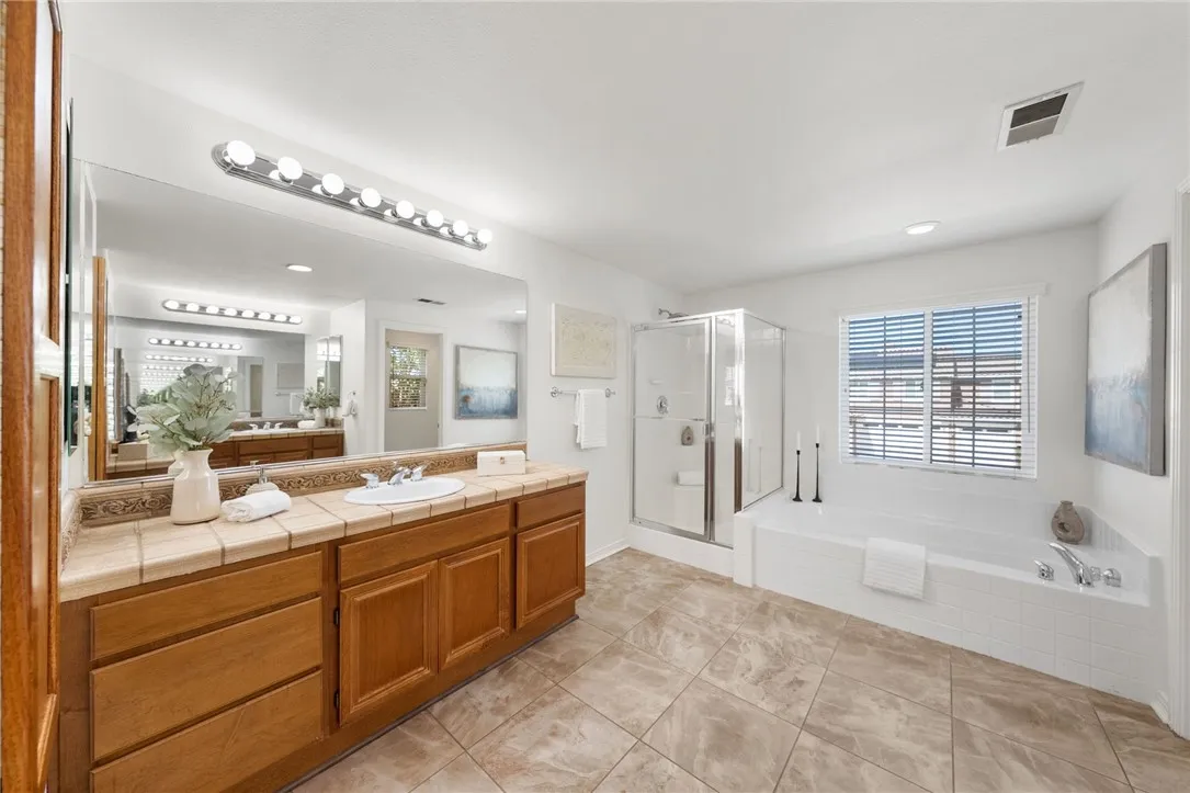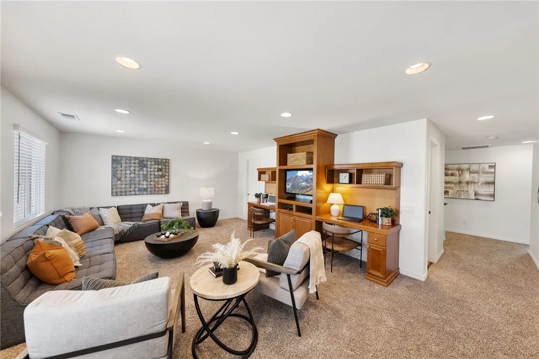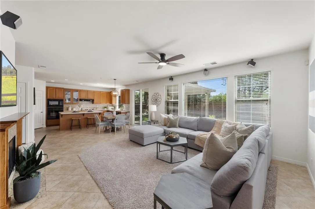 *GATED COMMUNITY in the HEART of MURRIETA* TURNKEY HOME * MAIN FLOOR BEDROOM Welcome to this beautifully updated home in the gated community of Big Tree, ideally located near Old Town Murrieta. With freshly painted exterior & charming curb appeal framed by mature cypress trees, this home invites you in from the moment you arrive. The quaint front porch is the perfect place to relax, watch the kids play on the expansive grassy area or enjoy the peaceful neighborhood setting. Step inside to a spacious, light filled layout featuring tile flooring & a freshly painted neutral interior throughout including walls, doors & baseboards. The living & dining rooms offer a welcoming space to gather & entertain, with direct access to the backyard for seamless indoor outdoor living. The kitchen is designed for everyday living & hosting alike, featuring maple cabinetry, a large eat in island, walk in pantry & an open flow to the family room. Here youll find brand new carpet, a cozy fireplace, ceiling fan & custom built in, all complemented by large windows overlooking the backyard. A main floor bedroom with mirrored wardrobes is conveniently located next to a full bath with tub shower combo, ideal for guests or multi generational living. The laundry room offers added functionality with ample cabinetry & a sink. Upstairs, brand new carpet extends throughout the entire second level. At the top of the stairs, a spacious bonus room(potential bedroom #6) with built ins & walk in closet creates endless possibilities for a home office, game room, or multi-genertational living, and is located next