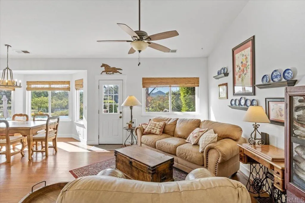 OPEN HOUSE CANCELLED - Accepted offer! Rarely does a Valley Center Estate offer this level of usable acreage, resort-style living, and lifestyle versatility - all in one extraordinary property. Tucked at the end of a quiet cul-de-sac and set on nearly five acres of fenced land, this one-of-a-kind retreat delivers expansive space, scenic surroundings, and possibilities that defines North Countys rural living. Wake up to mountain views and the peaceful presence of your own private 2-acre pond - ideal for kayaking, paddle boarding, stock it for fishing or simply watch the wildlife. This is where everyday life feels like a getaway. Designed for connection and entertaining... the outdoor experience features infinity-edge pool and spa, beautiful timber-frame patio cover, pool house (or home office), and expansive grounds that invite gathering, recreation, and relaxation - whether it is a friendly match on your private pickleball court or unwinding in total serenity...every detail invites you to live fully and intentionally. For those seeking a horse property, the equestrian facilities include a 3-stall corral and arena. Exceptional versatility with space for RV parking, future expansion, or the addition of an ADU - making this an ideal multi-generational property. Inside, this single-story beauty offers a bright, open layout with high ceilings and an effortless flow between living spaces. A two-sided fireplace creates warmth and connection between the living room and family room, while the spacious kitchen with pantry is perfectly suited for both everyday living and entertaining.