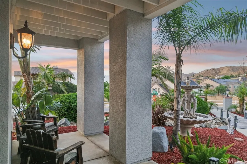 Welcome to this gorgeous luxury horse property in Norco, ideally situated on a corner lot within an exclusive cul-de-sac of just eight homes. Set on a fully fenced -acre lot, this property offers privacy, space, and breathtaking views of the surrounding hills. Designed for both comfort and entertaining, the backyard features a sparkling pool and spa with upgraded heater, built-in fire pit, and a spacious covered Alumawood patio. Extensive landscaping enhances the outdoor experience, while upper-level balconies provide the perfect place to take in the views. Inside, the home showcases elegant finishes and a functional layout, including formal living and dining rooms, along with an open-concept kitchen, dining, and family room. The family room features a cozy fireplace, and French doors from the dining area lead to the outdoor living space. The remodeled kitchen is a standout with a stunning Carrara marble waterfall island, full backsplash, pantry, and newer range with vent hood. Additional upgrades include recessed lighting, wood shutters, and fresh exterior paint. The primary suite offers a true retreat with a dual-sided fireplace, an oversized walk-in closet, and a beautifully updated bathroom with new flooring, jetted tub, and fresh paint. A junior suite with en-suite bath and wainscoting adds flexibility, along with a main-level bedroom for guests or multigenerational living. Additional highlights include dual garages, a laundry room with sink, Ring doorbell, and a bi-level lot ideal for equestrian use or expanded outdoor living. This exceptional property combines luxury