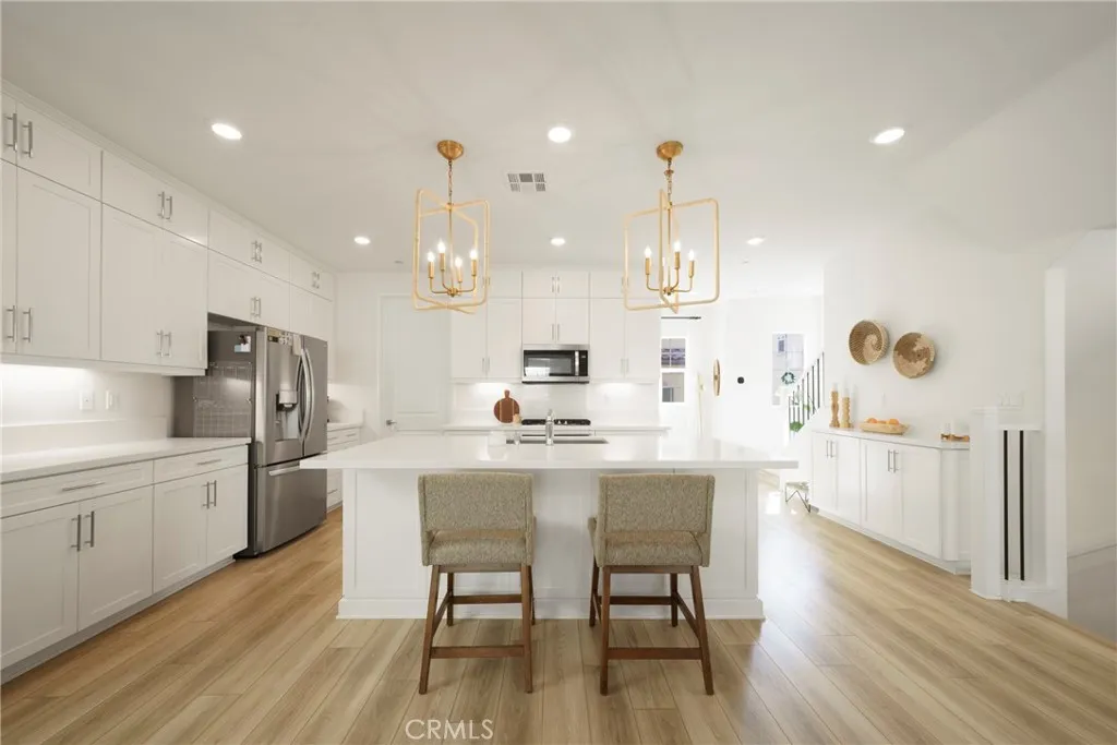 Welcome to Ponte Vista! South Bay's newest development in North San Pedro, boarding Rancho Palos Verdes Estates. This resort-style gated community offers amenities including a heated pool, jacuzzi, fire pit, barbecues, gym, outdoor shower, restrooms, dog park, playground, and scenic hiking trails. Not to mention a 2.4 acre public park! Upon entering our newly built, tri-level home, you will be welcomed with light; this home features a ton of natural light which starts to greet you in the foyer. One bedroom downstairs with a full bath and access to the outdoors gives you a the perfect retreat for guests, older children or a great work-from-home environment. Climb the stairs and you will be delighted to see a large, open layout that leads you from the kitchen, with plenty of cupboard and countertop space, into the shared dining room and living room combo. A beautiful central kitchen island, with state-of-the-art appliances, will bring you joy as you spend family time in a space that promotes connectivity. A powder room is conveniently located on this level while a large, walk-in pantry will be sure to put your storage concerns at ease. On the third floor you'll find three good-sized bedrooms with the primary suite providing a cute window, a fabulous walk-in closet, dual sinks and soaking tub that will ease the stresses of a long day. A laundry center is also located on this floor, reducing the need to lug laundry up and down the stairs! A full solar panel system reduces utility costs and a large two car garage provides direct access into the home. (*Photos were taken over a y