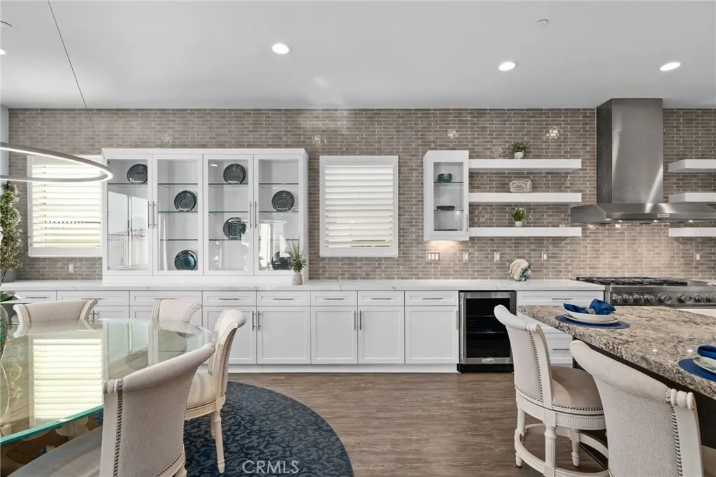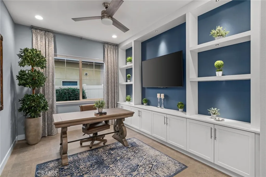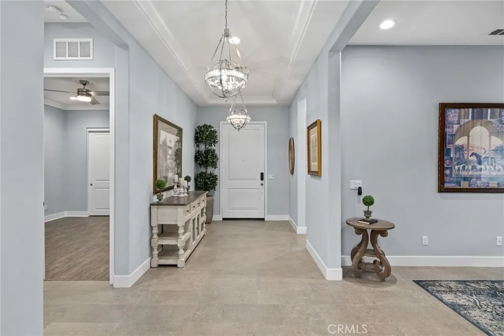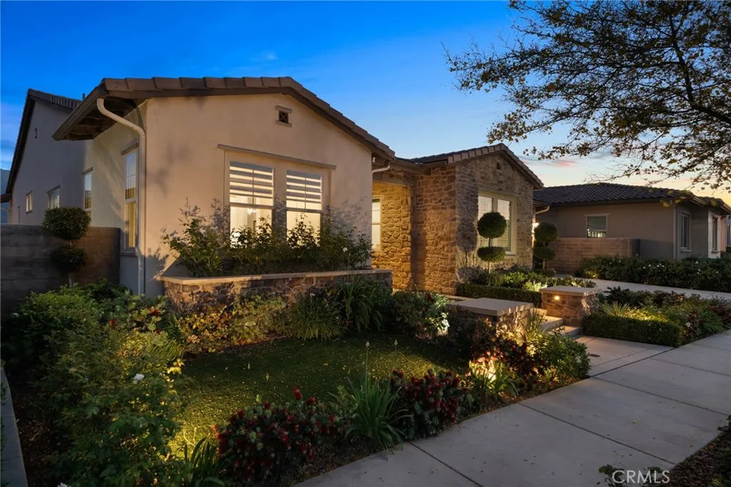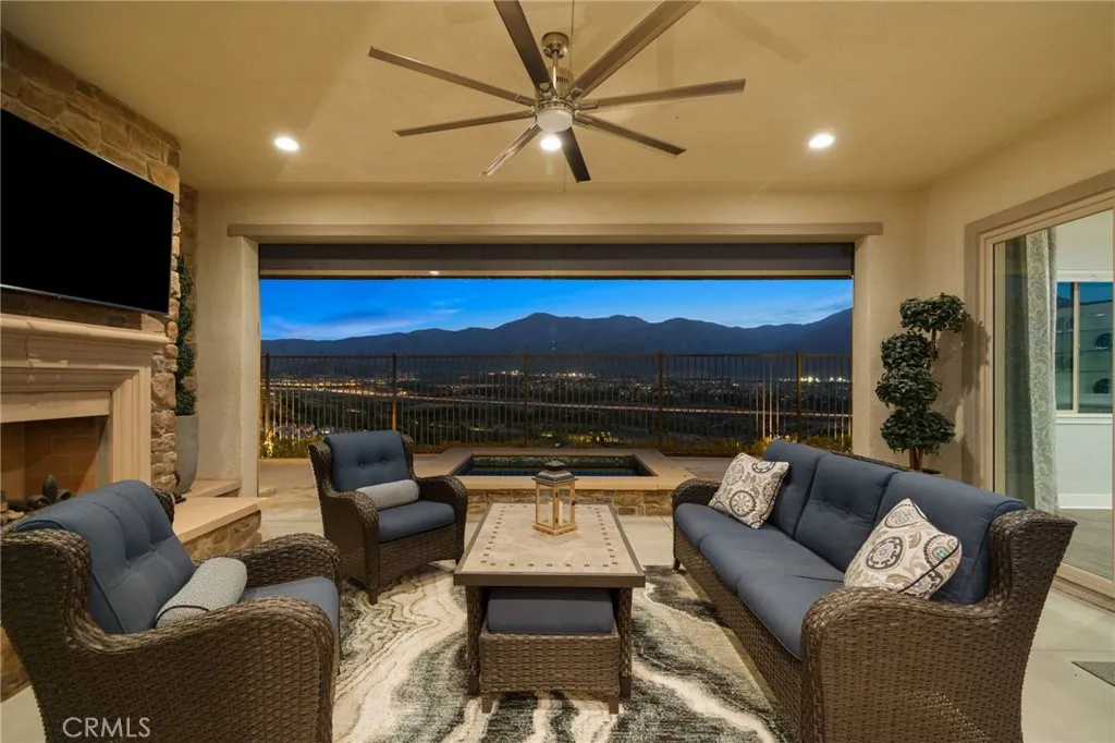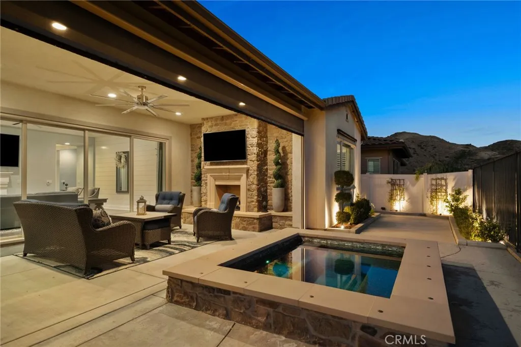 Welcome to elevated luxury living in the prestigious age restricted gated community of Terramor where thoughtful design, refined finishes, and seamless indoor-outdoor living come together in one of the communitys most exceptional residences. This meticulously upgraded home features paid-off solar (16 panels), a tankless water heater, and a fully integrated smart home system with Lutron Casita switches and Ring security. The exterior is an entertainers dream, highlighted by a built-in gunite jacuzzi with matching stone, stamped concrete decking, custom planters, lush artificial turf, and beautifully coordinated stonework from the front elevation to the backyard. Enjoy evenings under the covered California Room, complete with a custom stone gas fireplace, large ceiling fan, and electric roll-down shade for year-round comfort. Inside, elegance meets functionality with custom paint throughout, crown molding, coffered ceilings in the entry, living room, and primary suite, and premium flooring including luxury laminate and large-format ceramic tile. The open-concept living area boasts a stunning fireplace, shiplap accent wall, and two expansive stacking sliding doors that create a seamless transition to outdoor living. The gourmet kitchen is a true showpiece, featuring extended cabinetry with a built-in workstation and china cabinet, quartz countertops, a custom-painted island with granite, and an imported Japanese ceramic tile backsplash. High-end KitchenAid appliances include a 48 6-burner range with grill and double ovens, a third built-in oven, microwave/convection, built-in