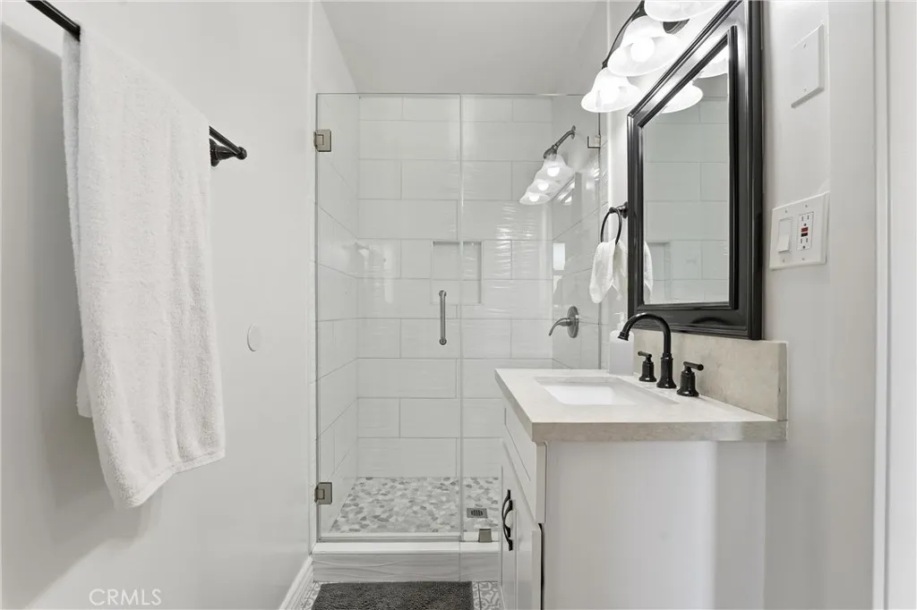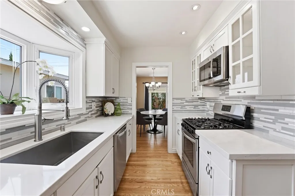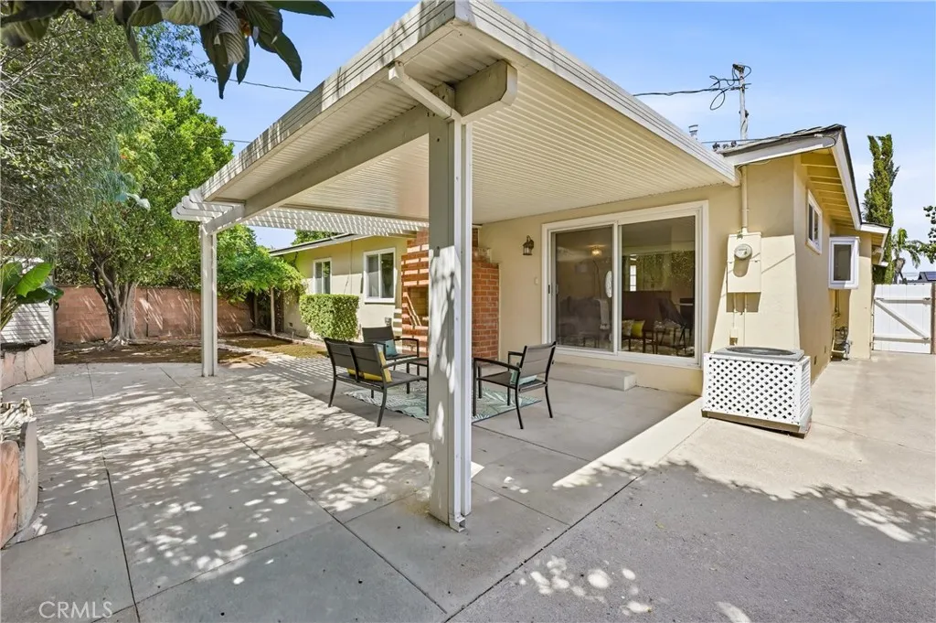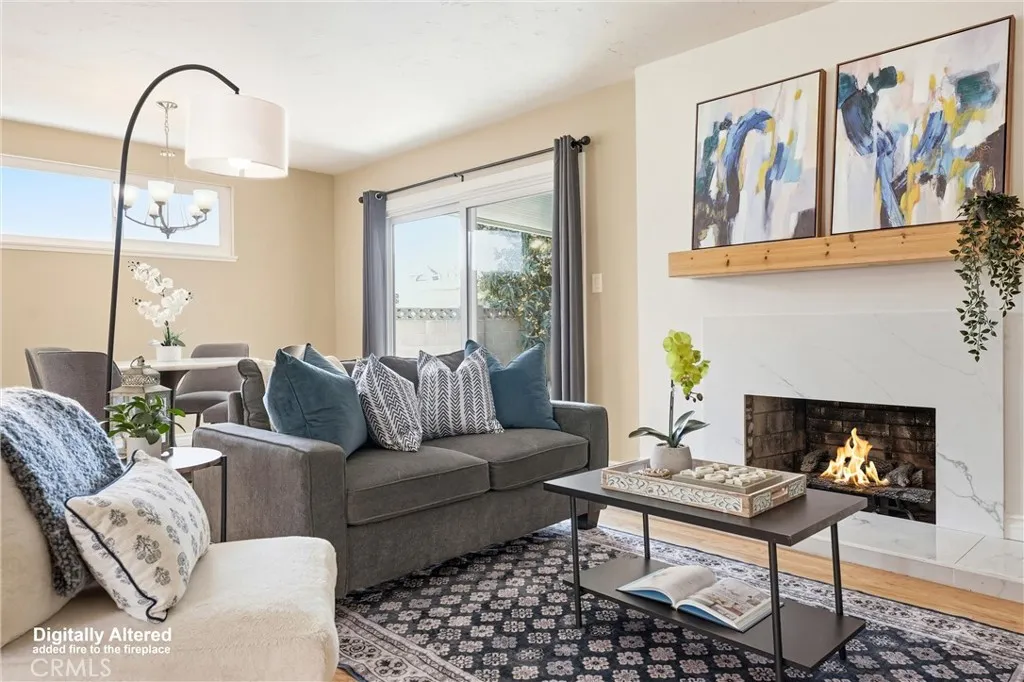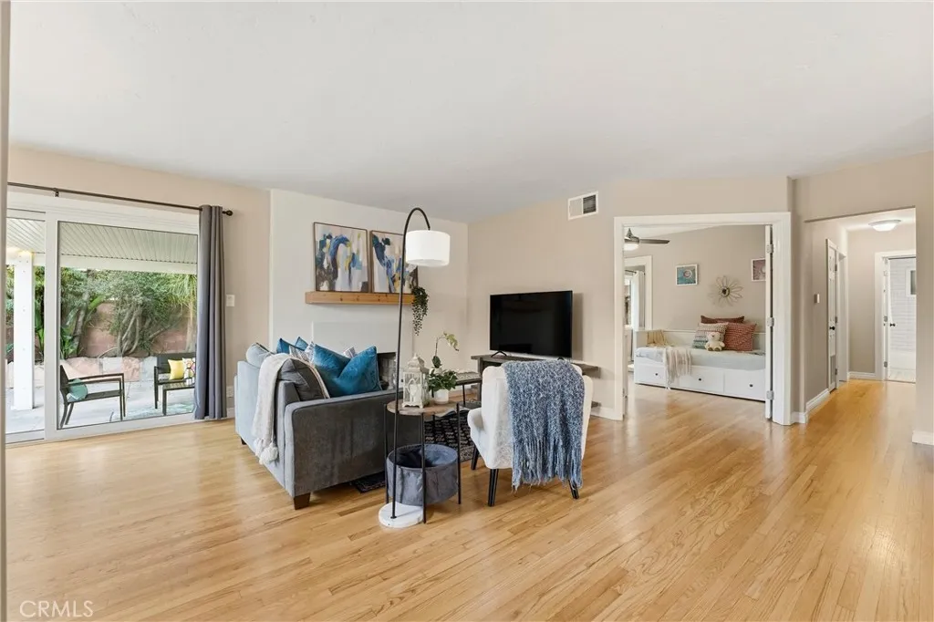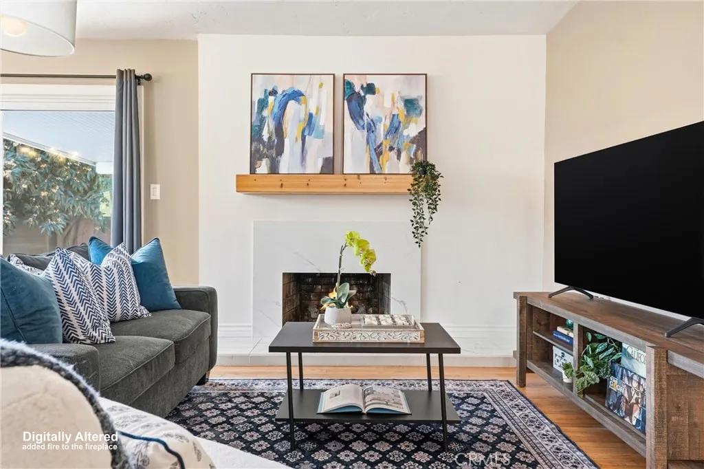 Beautifully upgraded single-story home located on a charming tree-lined street in Fullerton. This turnkey property offers excellent curb appeal with exterior paint, lush landscaping, and mature fruit trees.The bright open-concept layout features hardwood flooring throughout, 5-inch baseboards, vinyl windows and sliding doors, recessed lighting, contemporary fixtures, ceiling fans, and central air conditioning. The stunning kitchen showcases white cabinetry, quartz countertops, a glass tile backsplash, and stainless steel appliancesperfect for both everyday living and entertaining. The spacious living and dining areas are filled with natural light, highlighted by a beautiful quartz-surround fireplace that serves as the focal point of the home. All three bedrooms are generously sized with mirrored closet doors, including an expansive primary suite (approx. 20 x 12) with dual closets and a private retreat area. Both bathrooms have been tastefully upgraded with custom tile, frameless glass shower enclosures, and modern vanities and finishes.Enjoy the California indoor-outdoor lifestyle in the private backyard featuring a covered patio, custom flagstone hardscape. Located within the highly regarded Fullerton Joint Union High School District, with convenient access to the 91 and 5 freeways and just minutes from Downtown Fullertons shopping, dining, and transportation.