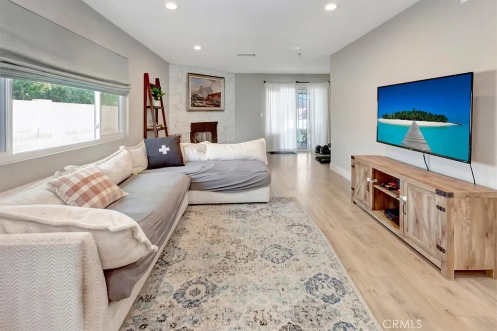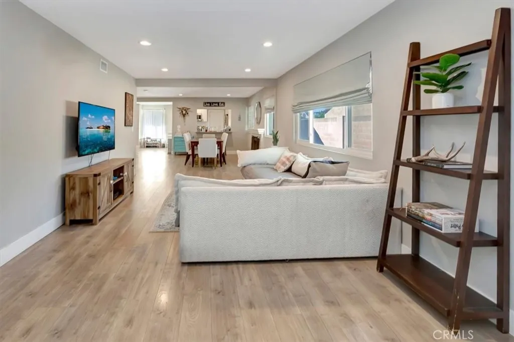 Beautifully updated single-level home on a quiet interior street in Lake Forest, offering approximately 1,700 sq ft with 4 bedrooms and 3 bathrooms. Step inside to a bright, open layout featuring wide-plank flooring, recessed lighting, and a seamless flow between the living, dining, and kitchen areas. The remodeled kitchen is the heart of the home, showcasing white shaker cabinetry, quartz countertops, stainless steel appliances, and a functional layout ideal for both everyday living and entertaining. The spacious floor plan includes multiple living areas and well-proportioned bedrooms, including a flexible fourth bedroom that works perfectly as a home office, guest room, or bonus space. Bathrooms have been tastefully updated with clean, modern finishes. The backyard is a standout feature, offering a large, usable space with a covered patio, expansive turf area, and multiple seating zones; perfect for entertaining, relaxing, or enjoying Southern California indoor-outdoor living year-round. A long driveway provides additional parking and flexibility. Located in a well-established neighborhood with no HOA, close to parks, schools, shopping, and dining. This is a rare opportunity to own a move-in ready single-story home with both style and space.