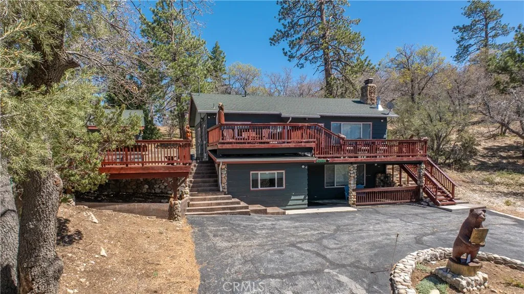 Escape to your private mountain retreat in Upper Moonridge, backing to acres of national forest with stunning ski slope views of Bear Mountain from nearly every room. This 4-bedroom, 3-bath home features vaulted ceilings, a striking river rock fireplace, and expansive windows that bring the outdoors in. The newly refinished deck captures breathtaking views, while multiple decks and patios create ideal spaces for outdoor living. Additional highlights include a hot tub-ready balcony and separate workshop. Just minutes to Bear Mountain, Big Bear Lake, and year-round recreationthis is the perfect blend of serenity and convenience.