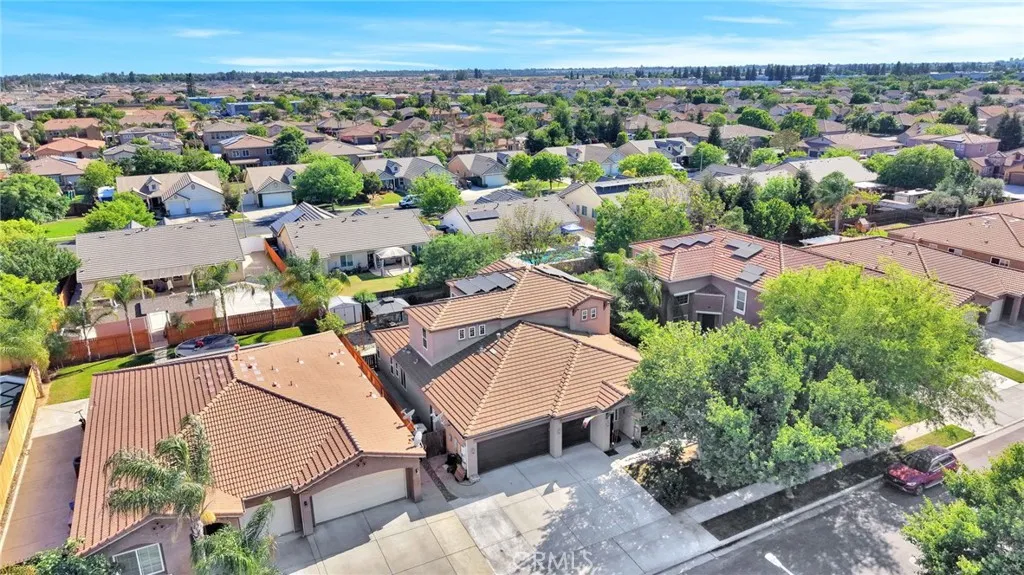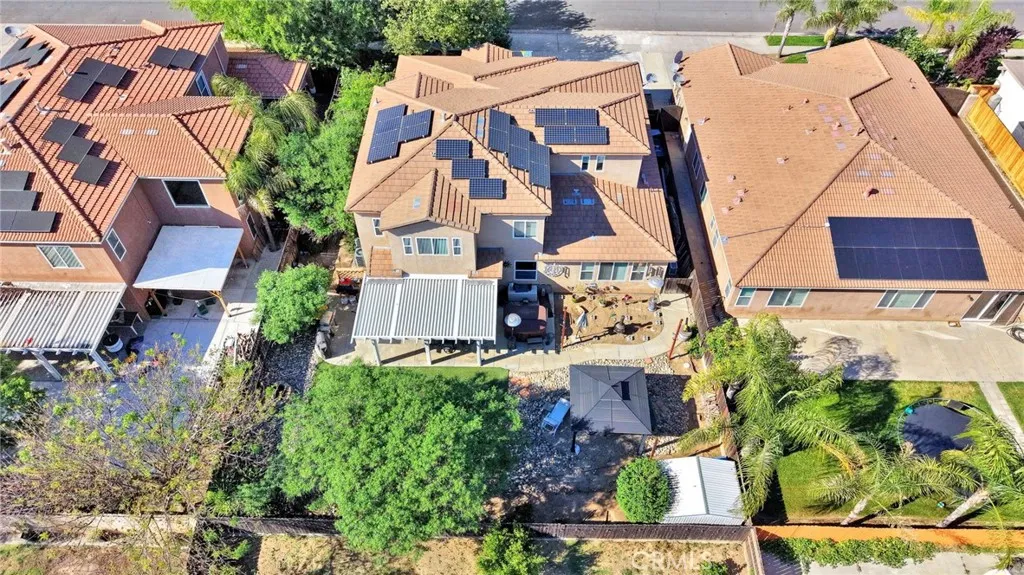 Welcome to this exceptional newer home in the heart of Fresno where modern upgrades, thoughtful design, and resort-style outdoor living come together seamlessly, all within the highly desirable Clovis Unified School District. From the moment you step inside, you'll be impressed by the beautiful, newer rich flooring that flows throughout the home, creating a warm and inviting atmosphere. The well-designed layout offers both functionality and comfort, featuring a spacious primary suite on the ground floor for added privacy and convenience, along with a dedicated office perfect for working from home or a quiet retreat. Upstairs, in addition to 3 more bedrooms and a bathroom, a generous 16' x 14' living room/den/loft provides versatile space that can easily function as a media room, game room, or additional lounge area to fit your lifestyle. Step outside and discover your own private backyard oasis. The permitted patio with a relaxing jacuzzi sets the stage for year-round enjoyment, whether you're entertaining guests or unwinding after a long day. The beautifully maintained garden alongside the home adds charm and tranquility, while mature shade trees create a peaceful, cool, park-like setting. Enjoy fresh fruit from your very own orange and fig trees, and appreciate the low-maintenance synthetic lawn that keeps the yard looking pristine. Additional outdoor features include added concrete work for custom usability, a charming gazebo for shaded gatherings, and a tool shed situated on a cement pad for extra storage and convenience. This home also features OWNED solar, offering si