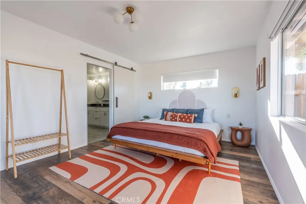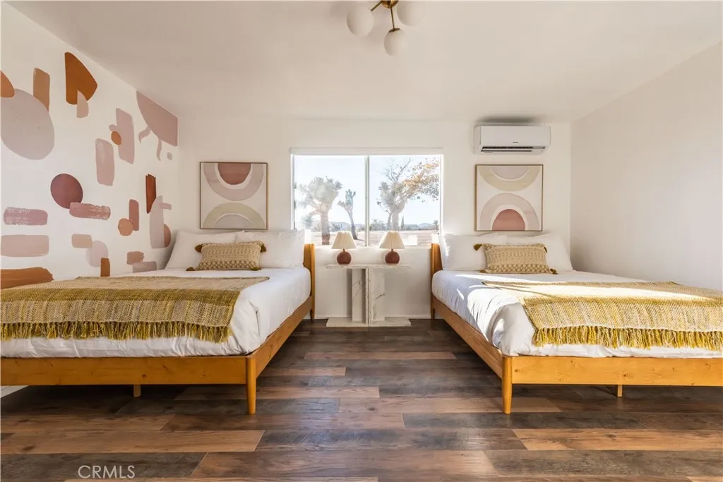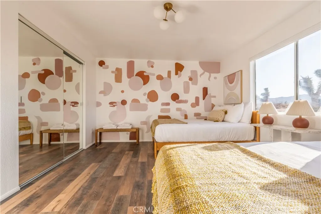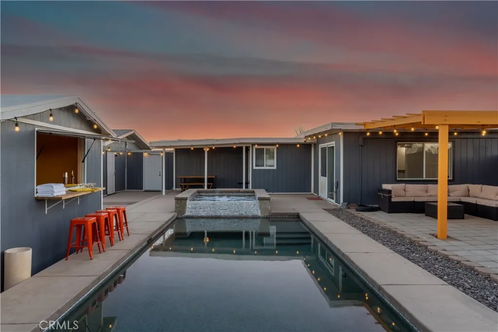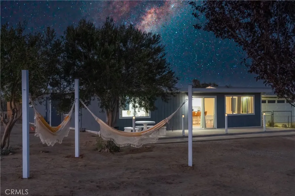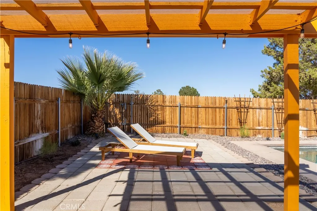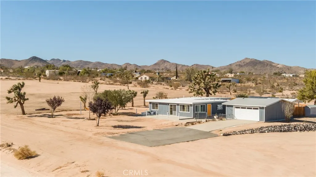 Remodeled POOL home on 1.8 acres with PAID SOLAR and Tesla Powerwall! Set against stunning natural surroundings with mature trees and iconic Joshua Trees, this beautifully upgraded 2-bedroom home offers the perfect blend of privacy, views, and modern comfort. Step outside to your own private resort-style backyard, featuring an enclosed pool area designed for ultimate seclusion. Enjoy a large pebble tech pool and spa, ideal for relaxing or entertaining, enhanced by a newer Jandy automation system that allows you to control the pool lighting, heater, spa jets, and water features right from poolside or your iPhone. The expansive outdoor space also includes generous concrete work throughout the pool area, driveway, and front porch, along with an outdoor dining area and a versatile storage shed. Inside, the home has been thoughtfully remodeled with new flooring throughout and a beautifully upgraded kitchen featuring quartz countertops and a designer backsplash. The light-filled living room showcases large windows that frame the scenic views while bringing in abundant natural light. The guest bathroom has been fully renovated with a tub and shower combo, while the primary suite offers direct access to the pool through a large sliding door, along with a fully remodeled ensuite bathroom complete with dual sinks, a walk-in shower with dual showerheads, and a spacious walk-in closet. With paid-off solar, a Tesla Powerwall for added energy efficiency and backup power, and a seamless indoor-outdoor lifestyle, this move-in ready home is a rare opportunity you dont want to miss!