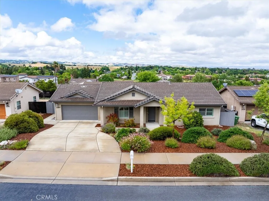 Offering a West Templeton Welcome from this inviting single level four bedroom home, situated on an elevated lot in a prized location. This well-priced opportunity affords lovely views from the easy care backyard, providing a perfect place for entertaining family and friends alike! Inside, you'll appreciate the open plan with 9 ft volume ceilings, lots of natural light and a well designed, flowing floorplan. Decorator colors and elegant plantation shutters thru-out are further accented by upgraded lighting (with ceiling fans in the living room and all bedrooms). The beautifully appointed kitchen includes upgraded cabinetry with soft-close doors and drawers (lots of lower pull-out drawers!), rich quartz countertops, newer stainless steel appliances and more. The primary bedroom suite includes a large walk-in closet and stylish bathroom with a recently installed walk-in shower in a separate room from the dual vanity sink area. And all three baths have custom Quartz countertops. Added cabinetry with a workbench area can be found in the finished 2 car garage. And all of this in the highly sought-after Templeton School District! Could this be the home you've been waiting for?!