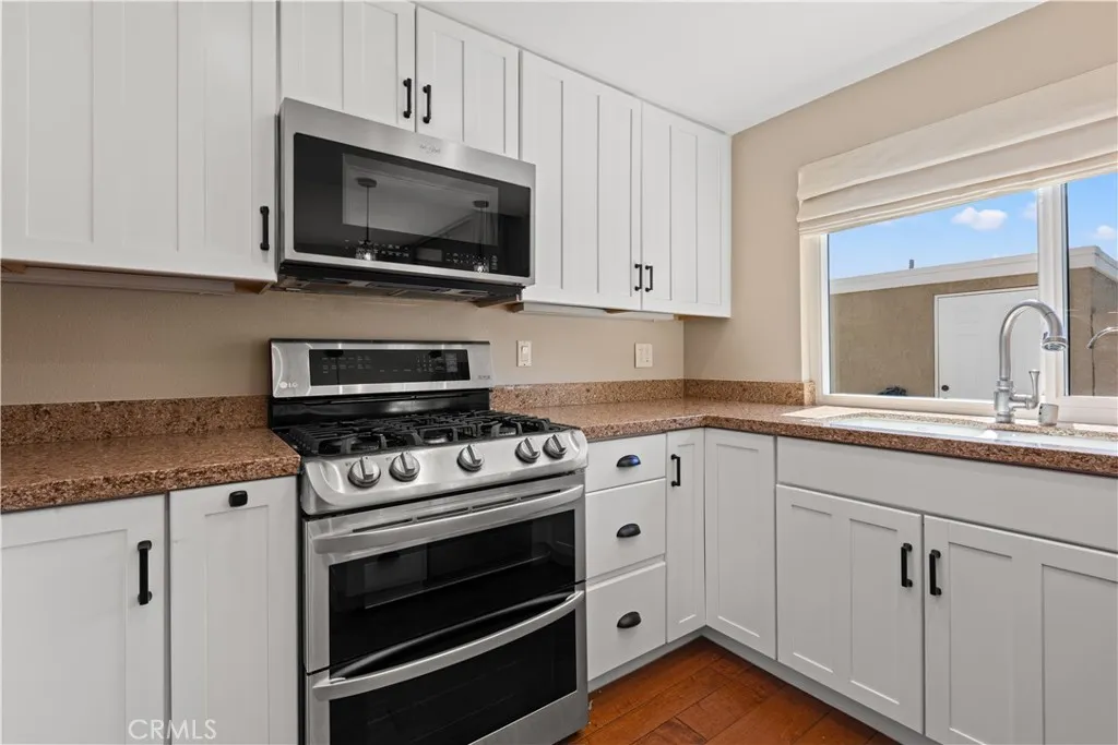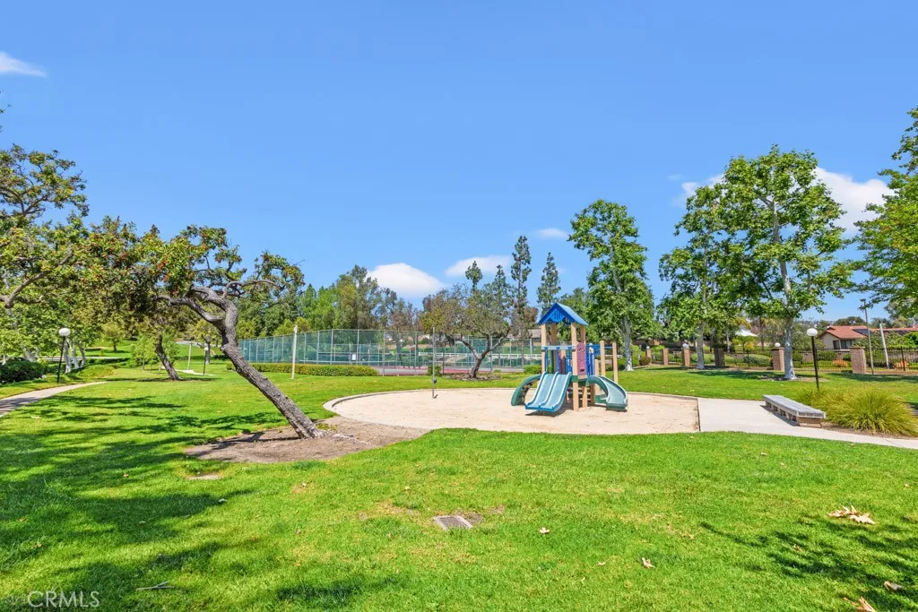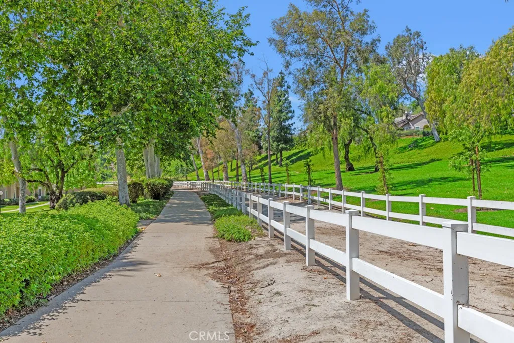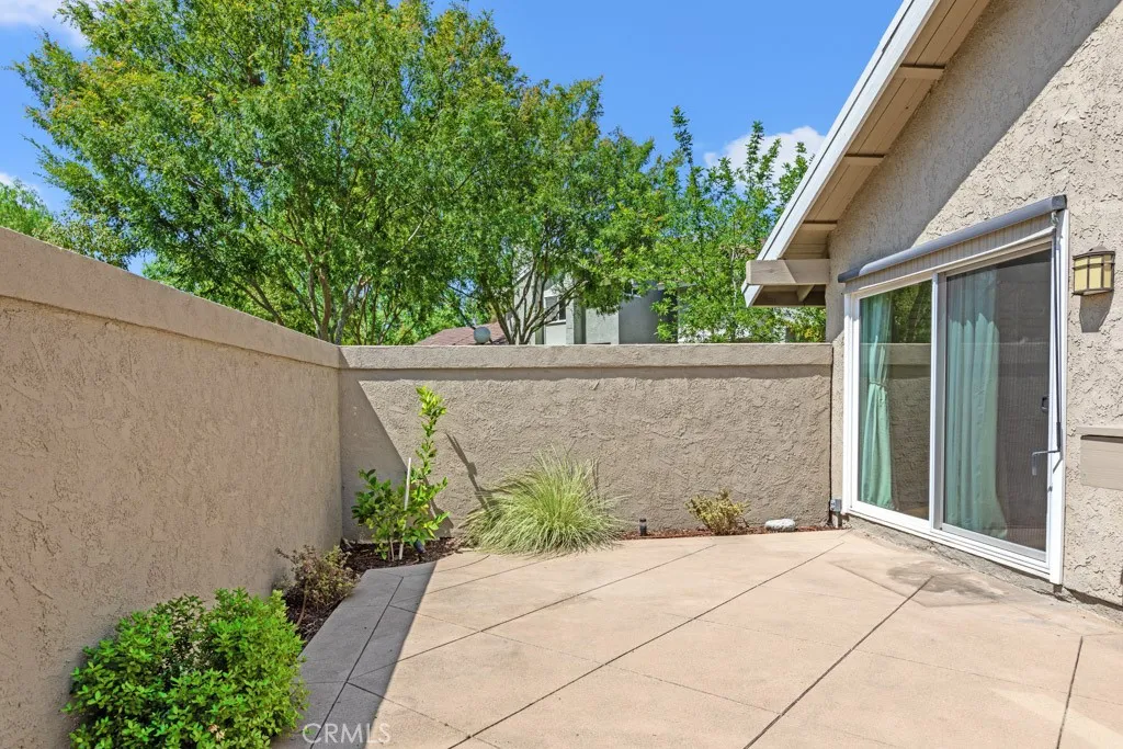Welcome to this beautifully maintained single-level townhome located in the highly desirable Rancho Dominguez community of Yorba Linda. Ideally positioned as a private end unit, this home enjoys a serene setting with lush greenbelt views from nearly every window, creating a peaceful and inviting atmosphere. Step inside to discover a bright, open-concept layout enhanced by vaulted ceilings and an abundance of natural light. The home features engineered wood flooring throughout, complemented by classic plantation shutters and updated baseboards and painting completed in 2024. The spacious living area is centered around a charming whitewashed brick fireplace and flows seamlessly into the dining space, which opens to an expansive outdoor patio, perfect for both relaxing and entertaining. The kitchen is thoughtfully designed with ample white cabinetry, granite countertops, and a functional peninsula ideal for casual dining or morning coffee. Additional highlights include a gas stove, double oven, and newer appliances, including a dishwasher and microwave installed in 2025. The primary suite offers a tranquil retreat with direct access to the patio through a newly installed sliding glass door. This generously sized bedroom includes a built-in dresser within the closet and an en-suite bathroom. Two additional bedrooms provide flexibility for guests, a home office, or hobbies, each featuring ceiling fans, shutters, and consistent flooring throughout. Outdoor living is elevated with a larger-than-average patio that includes ambient lighting and automatic sprinklers, making it both f