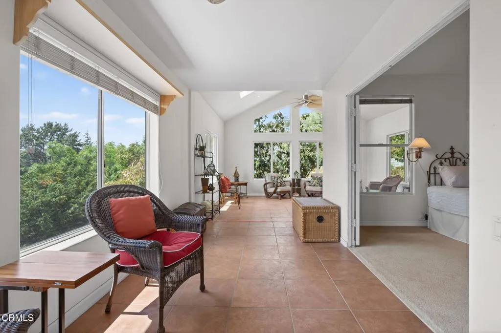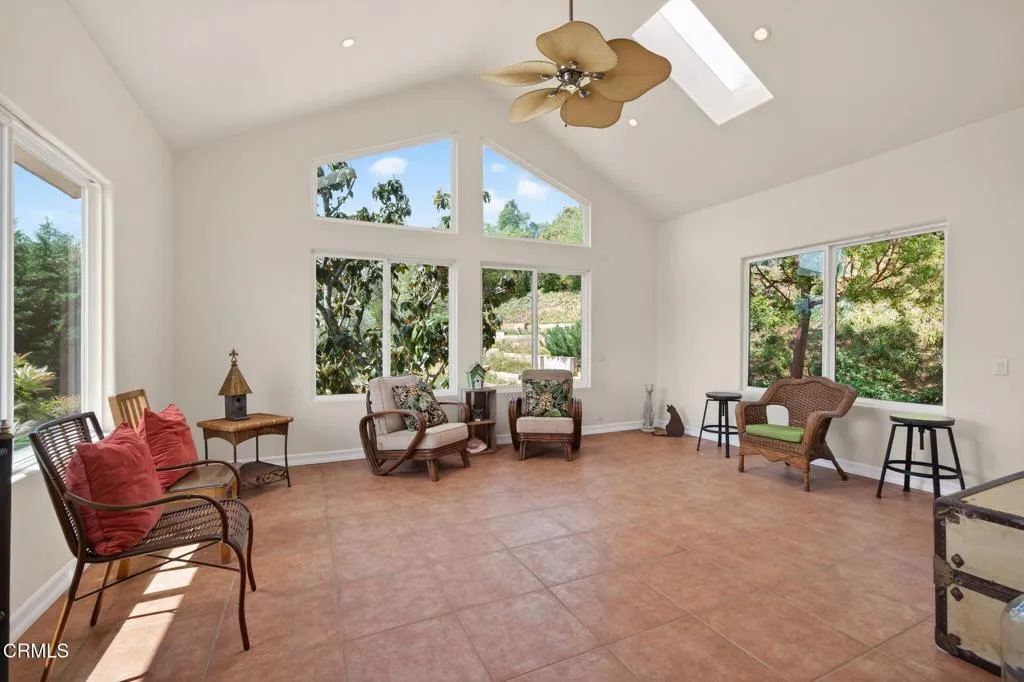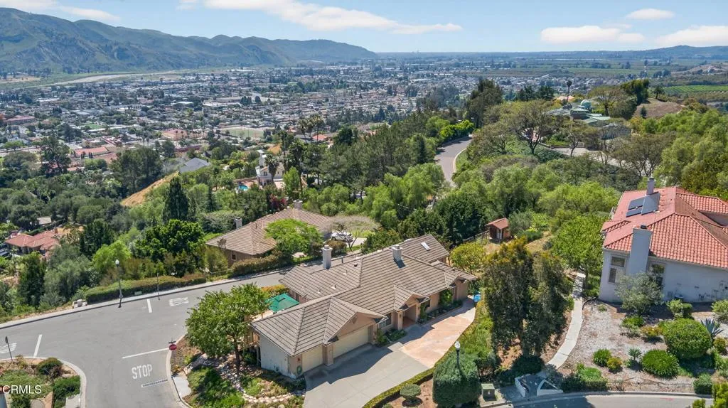 Perched on nearly half an acre of ultra-private grounds, this 1990s Santa Paula sanctuary offers breathtaking city views and a layout designed for incredible versatility to fit your specific needs. The light-filled interior features a main-floor primary suite and a beautifully remodeled chef's kitchen complete with granite countertops, custom cabinetry, and a charming breakfast nook. Designed for modern comfort, the home is equipped with a dual AC system and the rare convenience of two separate laundry areas--one on each level. The expansive living spaces flow seamlessly into the massive sunroom or an incredible deck complete featuring a built-in BBQ; creating the perfect setting for seamless indoor-outdoor entertaining and sunset dinners against a backdrop of twinkling city lights. While feline enthusiasts will appreciate the unique custom cattery--a fully screened porch area with a track that allows pets to safely peak their heads up onto the deck. The lower level, featuring a recreation room, office, and media room; offers immense potential for a guest or caretaker's quarters. Surrounded by mature landscaping, the exterior provides the ultimate in privacy and is complete with an oversized garage and a large driveway with ample parking.