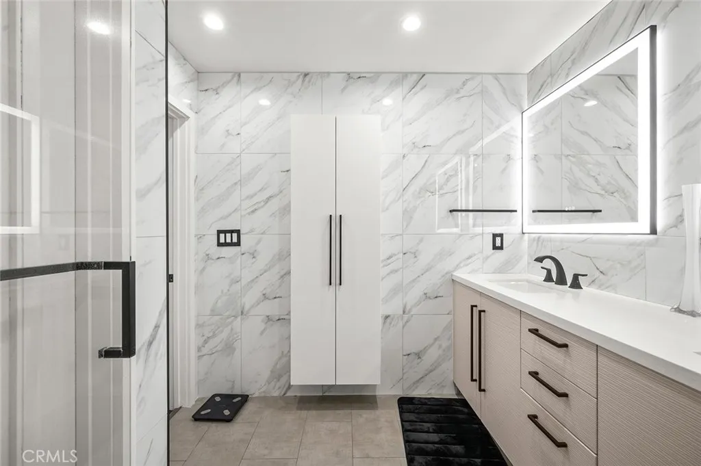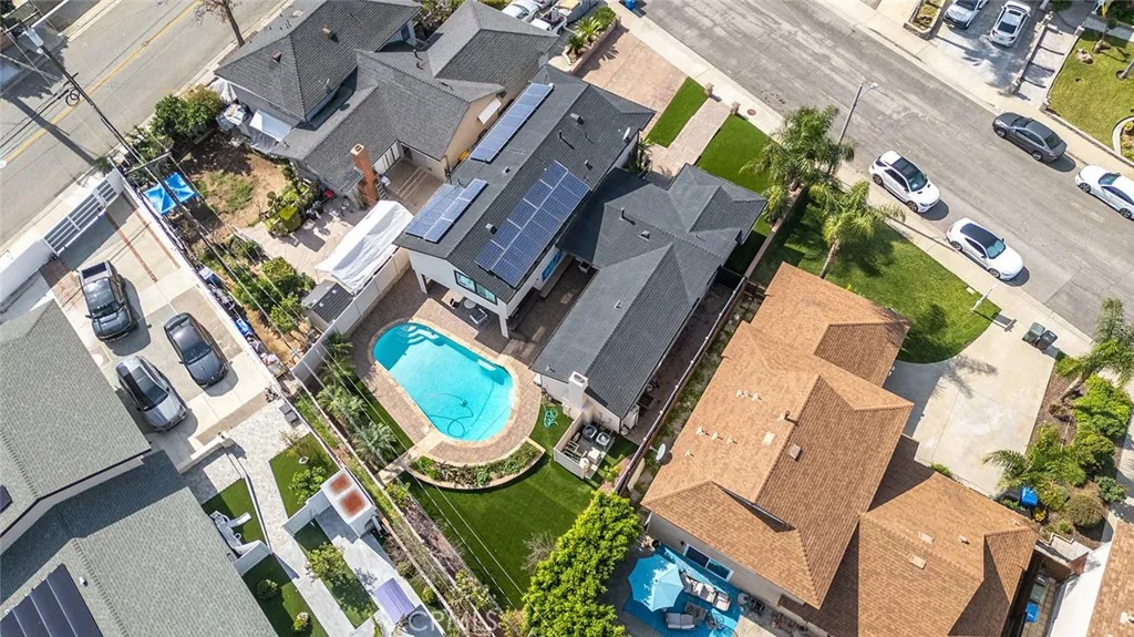 Beautifully upgraded 4-bedroom, 3-bath home offering 2,637 sq ft of modern luxury and thoughtful design. This turnkey property is loaded with high-end features and smart upgrades throughout. Enjoy peace of mind with a full camera system surrounding the home, complete with DVR and remote viewing. A whole-house filtration system (valued at $7,500) adds comfort and quality to everyday living. The interior boasts brand-new kitchen cabinets, striking accent walls with custom finishes, sleek black chrome appliances, and a spacious pantry ideal for storage and organization. Additional highlights include a large coat closet, wet bar, and ultra-soft carpeting. The home features beautifully upgraded bathrooms with digital showers, modern finishes, and updated flooring, along with a stylish new staircase and railing. Fresh interior and exterior paint, LED lighting throughout, and a brand-new tankless water heater enhance both style and efficiency. Step outside to your private backyard retreat featuring a pool with a new pump and finish, built-in BBQ with island, built-in fire wall, and elegant landscape lightingperfect for entertaining. The custom marble-look garage flooring adds a polished touch. With walk-in closets, smart home features, and premium upgrades at every turn, this home offers the perfect blend of comfort, technology, and style in a highly desirable location.