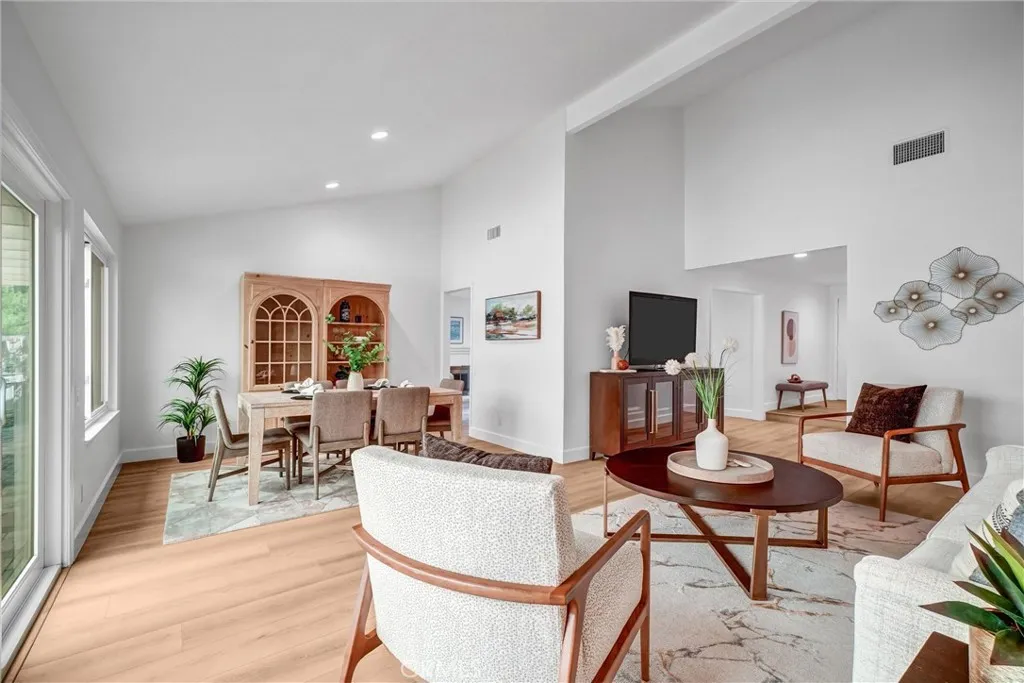 Stunning Single-Level Corner Lot Home in Prime Mission Viejo Cul-de-Sac Location Welcome to this beautifully remodeled 3-bedroom, 2-bath home, ideally situated on a private cul-de-sac in one of Mission Viejos most sought-after neighborhoods. Set on an expansive corner lot, this exceptional residence offers the perfect blend of style, comfort, and functionality. Step inside to discover a light-filled open floor plan with soaring vaulted ceilings, wide-plank luxury vinyl flooring, fresh interior paint, and large dual-pane windows throughout. The homes stunning rear wall of windows and sliding glass doors floods the space with natural light, creating a seamless indoor-outdoor living experience. The spacious living room flows effortlessly into a formal dining area, ideal for entertaining. The bright, updated kitchen overlooks the beautifully landscaped backyard and opens to a cozy family room with a fireplaceperfect for everyday living. Step outside to your expansive backyard oasisdesigned for entertaining and enjoyment. Highlights include: custom paver patio, stacked stone outdoor fireplace, covered patio area, low-maintenance turf lawn, a potting bar and planters with native California landscaping. The private primary suite is a true retreat, featuring an additional flexible room ideal for a home office, nursery, or relaxation space. Both bathrooms have been thoughtfully remodeled with new cabinetry, tile, countertops, and modern finishes. Additional upgrades include: new HVAC system and ductwork, tankless water heater, fully repiped pex plumbing, new range and microwave, and