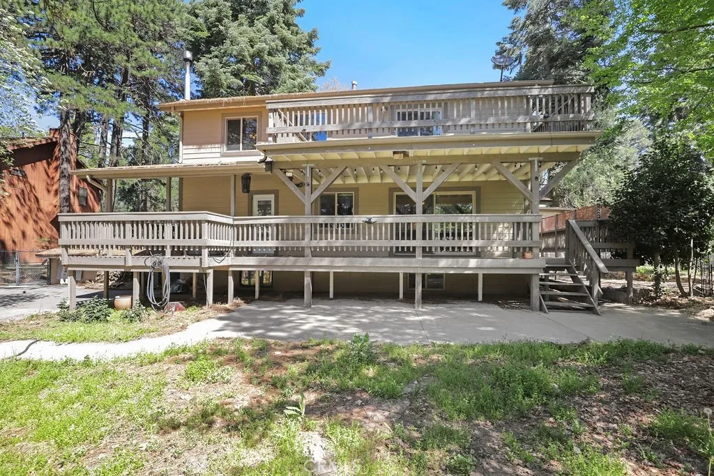 Back on marketno fault of seller. A second opportunity to own this unique mountain retreat, now offered at improved pricing! Discover this exceptional property set on two separate lots with dual access from Hilltop and Jobs Peakfeaturing rare flat, usable land, a true standout in Cedarpines Park. Designed for versatility and mountain living, this property offers RV parking, full fencing, and street-to-street access, creating space, privacy, and functionality. The outdoor setting is a nature lovers dream with room for gardening, recreation, and your own private mountain oasis, surrounded by tall, majestic trees. Inside, enjoy a warm and inviting layout featuring a rock fireplace, spacious living areas, and large decks ideal for relaxing or entertaining among the trees. The main level offers a welcoming living room, kitchen with quartz countertops, island with breakfast bar, walk-in pantry, and direct access to the covered wraparound deck. The lower level provides additional living space with its own fireplace, perfect for a media room, guest quarters, or private retreat, making this home an excellent multigenerational living opportunity with separation and flexibility. Upstairs, youll find a large primary suite with private bath and its own deck, plus two additional spacious bedrooms and a full bath. Additional highlights include: 2-car garage with entry to home + carport + RV parking + atv, mower garage with entry to lower level Separate lot included with road access, shed, and growing area Laundry room with folding counter. Multiple deck spaces for enjoying mountain and tr