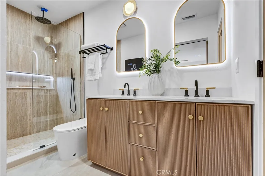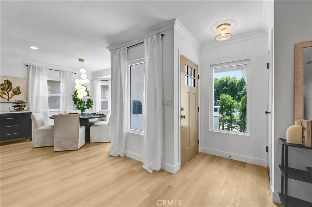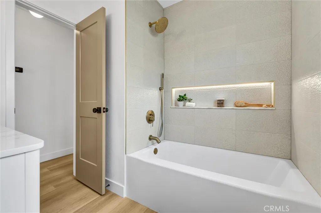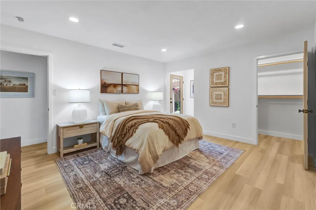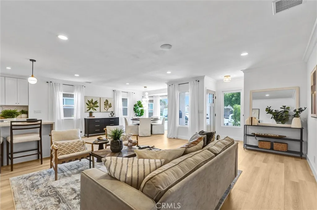 Stunning luxury upgraded Lakewood home on a rare cul-de-sac. This beautifully updated 3-bedroom, 2-bath home offers nearly 1,700 sq ft of modern luxury in one of Lakewoods most desirable and quiet cul-de-sac locations. Enjoy the convenience of being moments from Cerritos Mall, dining, and everyday amenities while tucked away on a low-traffic street ideal for those seeking privacy and calm. Step inside to an open floor plan featuring a formal living and dining area with a charming bay window. The gorgeous chefs kitchen showcases brand-new KitchenAid appliancesincluding counter depth refrigerator, microwave, gas convection range, and dishwasher - paired with white shaker cabinetry, Calcutta Queen quartz counters, marble backsplash, pot filler, custom lighting, and a peninsula with waterfall edge. A spacious family room with vaulted ceilings becomes the heart of the home, complete with a gas fireplace, recessed lighting, custom built-in bar with beverage cooler, wine/liquor rack and French doors leading to a new covered patio. The home is loaded with premium upgrades: whole-house sound system, central heat and AC, dual-pane windows, all-new doors, two-panel shaker interior doors, crown molding, and upgraded base and casing. The large primary suite features a fully remodeled bathroom with designer touches rarely found at this price point -dual vanity with built-in USB/power outlets, heated mirrors, lighted shower niche, and a smart toilet. The stunning hall bath mirrors the same level of luxury with a new vanity, smart toilet, heated mirror, and real marble light fixture. Outsi