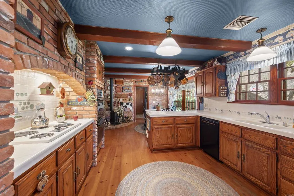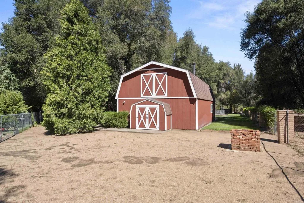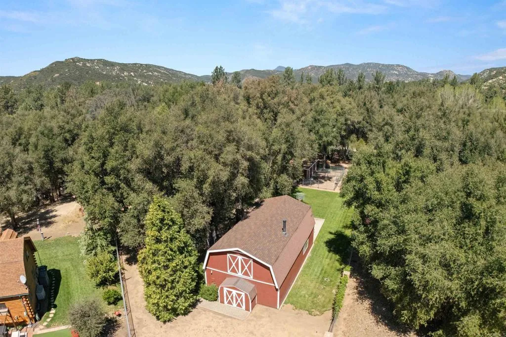 THIS PROPERTY IS MAGICAL - This level, tree shaded property is so useable with stalls for animals and an amazing nearly 1,000 sf improved Barn that is the sweetest game area for hours of fun, all warmed by a cute wood stove, and equipped with a half bath. This Barn could potentially become a fabulous ADU with loft area and tons of storage the possibilities are endless. The lovely ranch home is not only charming, but well suited on the property for privacy and access to all of the property features. This custom built home offers a great flow from a large entry to an eat-in kitchen, cozied by a cute wood stove. There is also a large walk-in pantry, near by a full laundry room and half bath. Leading into the great room you are greeted by a beautiful fireplace and multiple sets of French doors to access the full house width covered patio - perfect for entertaining or relaxing. Adjacent to the great room is a formal dining room also with a French door for patio access. The three bedrooms, one currently used as an office, are very generous in size and have ample closet space in each room. The primary bedroom is en suite and has a lovely fireplace, a large walk in closet and French doors to the patio area. The extra large attached garage offers built in storage throughout. The home has both central air and heat throughout. This home was thoughtfully designed and has been lovingly cared for by the same family. New Roof - 2 years ago, 340 Ft well - also hooked up to Pine Valley water if needed, Generac Standby Generator, permitted at install is 3.5 years new, HVAC - new 4.5 years ag