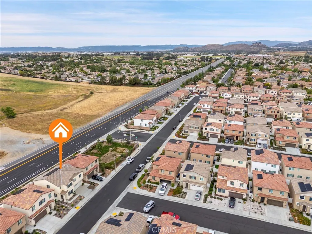 Wake up and watch hot air balloons drift across the sky from your own backyard. Largest 5-bedroom floor plan in Tierra Del Sol designed for space, flexibility, and everyday living. PAID SOLAR TEMECULA SCHOOLS LOW MAINTENANCE LIVING. Light-filled open-concept great room connecting kitchen, dining, and living spaces. Upgraded kitchen with granite countertops, tile backsplash, and modern finishes. Downstairs bedroom + full bath ideal for guests, office space, or accessibility. Upstairs loft + expansive primary suite with room to relax and recharge. Private backyard retreat with patio, raised garden beds, and automatic watering system. Dedicated pet run with turf + drainage clean, low-maintenance, and built for convenience. Fully landscaped front yard with irrigation + extended driveway for additional parking flexibility. ADT security system + garage with heavy-duty storage racks already in place.
