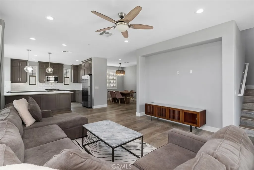 Located in the highly desirable Trellis neighborhood of Esencia. This end lot location has an upgraded home featuring the largest floor plan with 3 bedrooms and 3.5 baths. The first level includes a bedroom and full bath, ideal for guests or multi-generational living. The second level offers an open-concept great room with a spacious kitchen, dining area, and family room. The kitchen is appointed with quartz countertops, gray cabinetry, stainless steel appliances, designer backsplash, and faux wood flooring. A wraparound balcony extends the living space outdoors. The primary suite includes a walk-in closet, dual vanities, soaking tub, and separate shower. An additional bedroom, bathroom, and laundry area complete the second level. Enjoy panoramic views from the expansive rooftop deckperfect for entertaining. Additional highlights include a wraparound front porch, white picket fence, and upgraded finishes throughout. Residents of Rancho Mission Viejo enjoy access to resort-style amenities including pools, spas, fitness centers, community farms, parks, sports courts, Esencia K8 School, and more.