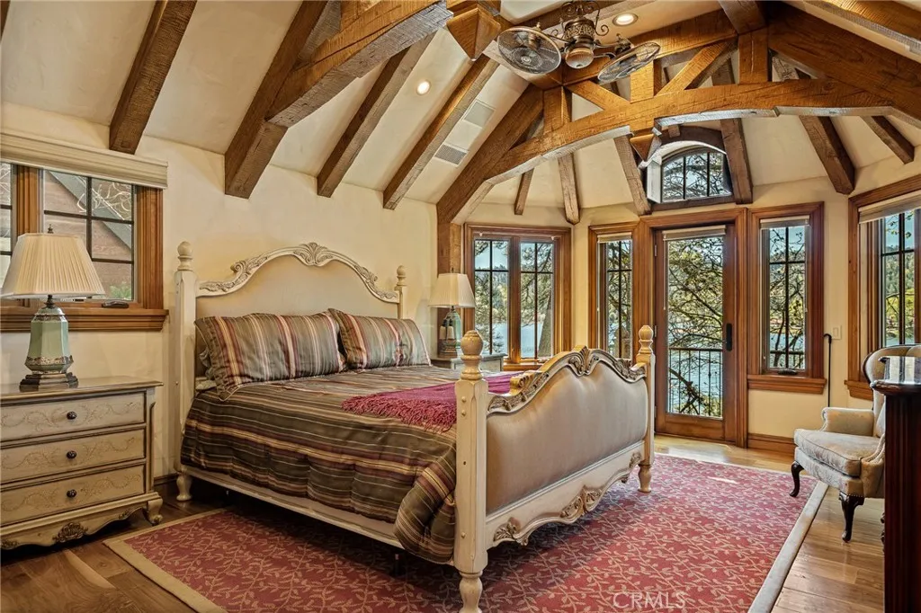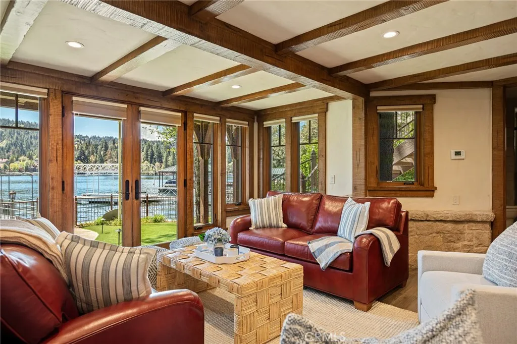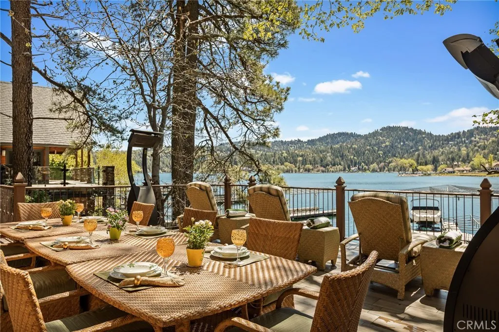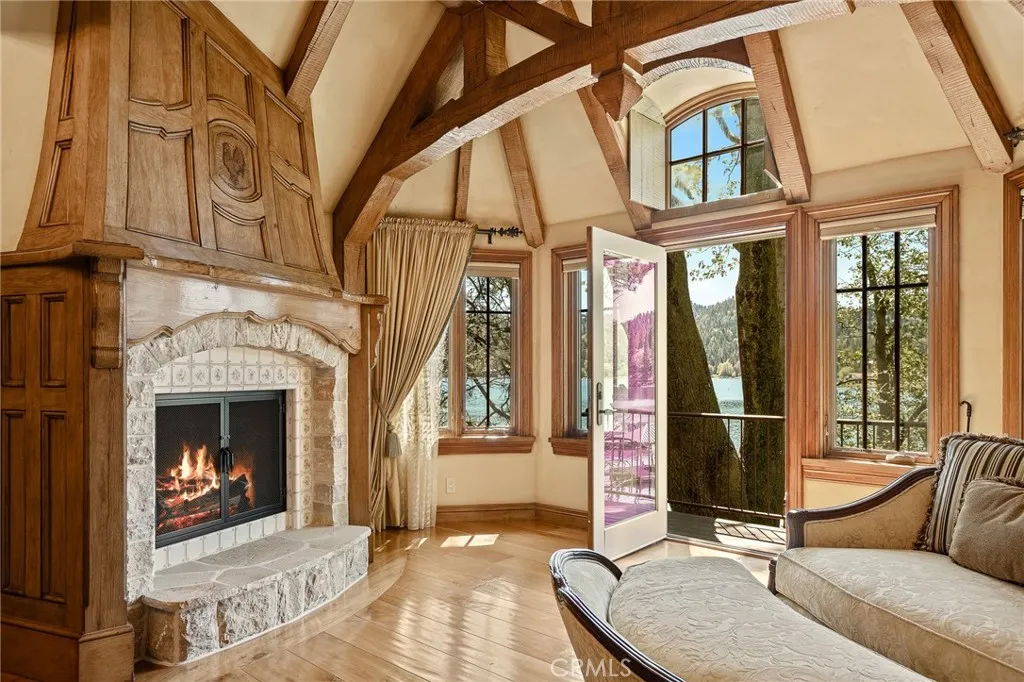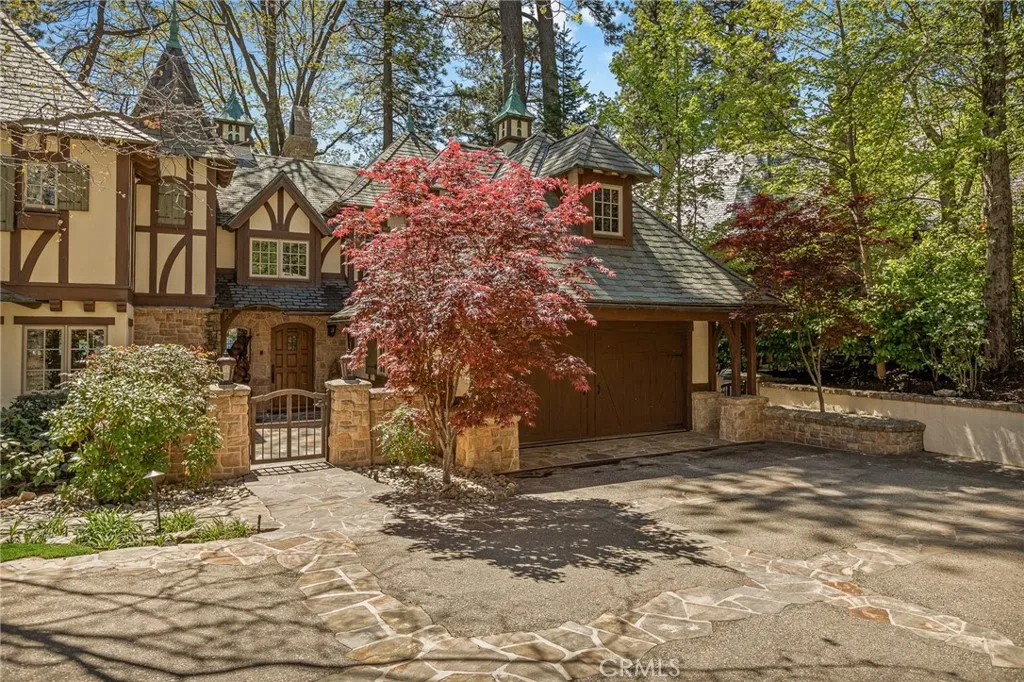 Set directly on the lake with two private boat docks, this fully reimagined English Tudor estate is one of the most distinctive and irreplaceable properties in Lake Arrowhead. Extensively redesigned inside and out by noted architect David Abbott, with a full-scale construction remodel completed between 20042006, the home is a true expression of old-world European craftsmanshipnot a reinterpretation, but a fully realized architectural statement brought to life with enduring quality and intention. Every detail has been thoughtfully executed, blending timeless design with modern comfort. Positioned behind the gated entry of the prestigious Point Hamiltair community, with a dramatic stone approach and directly across from the Lake Arrowhead Village, the home unfolds with a true sense of arrivalreminiscent of a Cotswolds manor. Inside, exposed timber beams, hand-chiseled woodwork, custom wrought iron, and layered artisan finishes create a warm, richly detailed interior. The residence has been extensively renovated and upgraded throughout. Custom cabinetry, handmade doors, and one-of-a-kind custom woodwork crafted on-site reflect a level of care and craftsmanship rarely seen. Fireplaces feature hand-painted tile by Nancy Grace, complemented by hand-carved mantels that anchor each living space. The primary suite is designed as a private retreat, featuring a statement chandelier, hand-painted mosaic tile, steam shower, and spa-quality finishes. Architectural enhancementsincluding added dormers and custom built-inselevate both livability and design. Modern systems are fully integrat