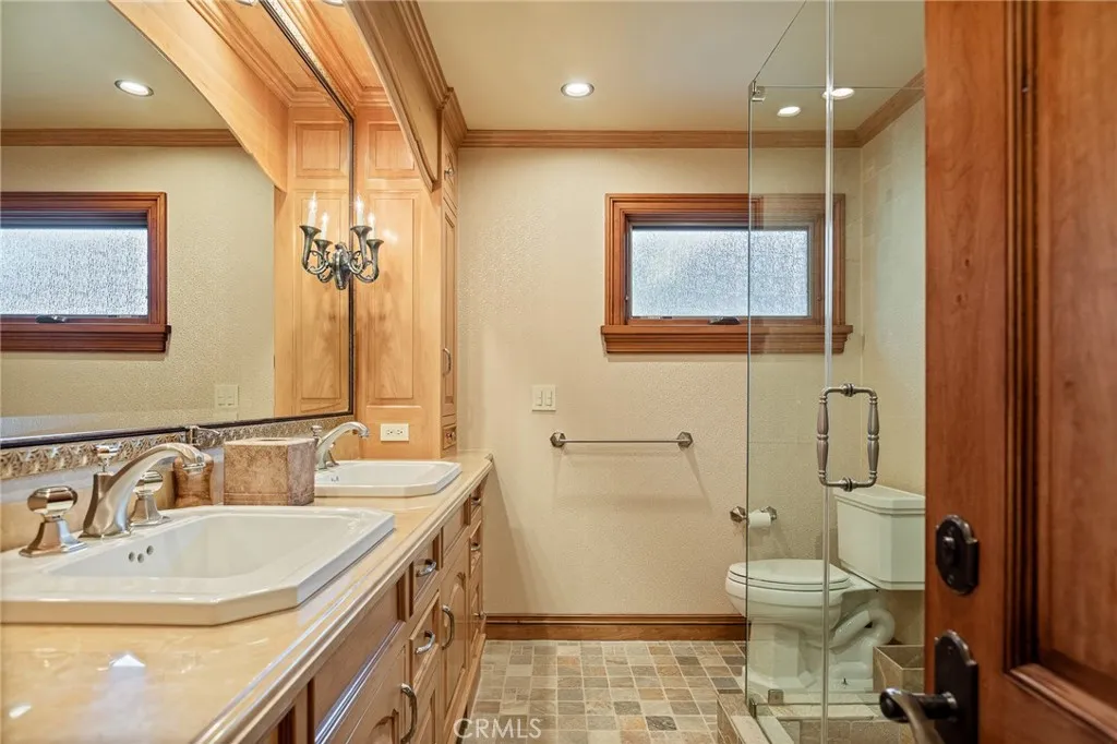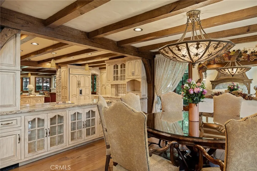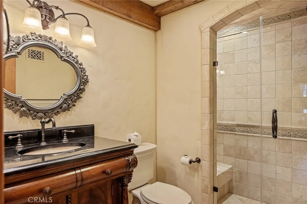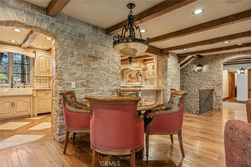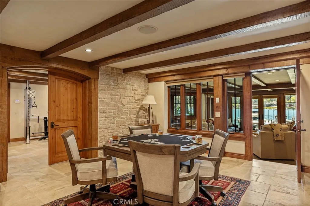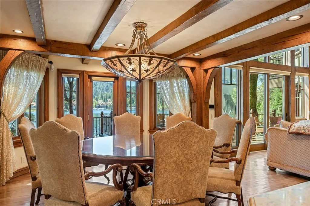 Set directly on the lake with two private boat docks, this fully reimagined English Tudor estate is one of the most distinctive and irreplaceable properties in Lake Arrowhead. Extensively redesigned inside and out by noted architect David Abbott, with a full-scale construction remodel completed between 20042006, the home is a true expression of old-world European craftsmanshipnot a reinterpretation, but a fully realized architectural statement brought to life with enduring quality and intention. Every detail has been thoughtfully executed, blending timeless design with modern comfort. Positioned behind the gated entry of the prestigious Point Hamiltair community, with a dramatic stone approach and directly across from the Lake Arrowhead Village, the home unfolds with a true sense of arrivalreminiscent of a Cotswolds manor. Inside, exposed timber beams, hand-chiseled woodwork, custom wrought iron, and layered artisan finishes create a warm, richly detailed interior. The residence has been extensively renovated and upgraded throughout. Custom cabinetry, handmade doors, and one-of-a-kind custom woodwork crafted on-site reflect a level of care and craftsmanship rarely seen. Fireplaces feature hand-painted tile by Nancy Grace, complemented by hand-carved mantels that anchor each living space. The primary suite is designed as a private retreat, featuring a statement chandelier, hand-painted mosaic tile, steam shower, and spa-quality finishes. Architectural enhancementsincluding added dormers and custom built-inselevate both livability and design. Modern systems are fully integrat