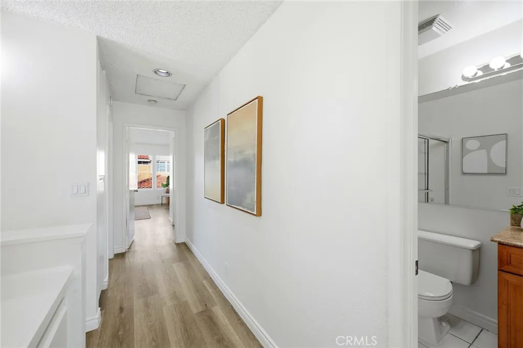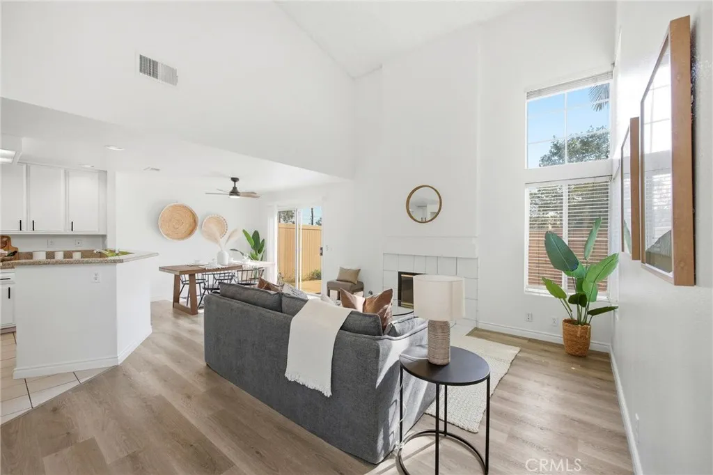 Welcome to this stunning 3-bedroom, 2.5-bathroom townhouse in one of Corona's most sought-after communities, Cortina! Conveniently located near the 15 and 91 freeways, this home offers easy access to shopping, dining, and entertainment while being tucked away in a peaceful neighborhood. Step inside to brand-new luxury vinyl plank (LVP) flooring and fresh paint, creating a modern and inviting atmosphere. The high ceilings in the living room enhance the sense of space and grandeur, while ample natural light fills the open floor plan. A cozy fireplace in the living room adds warmth and charm, perfect for relaxing evenings. The dining area opens to a private enclosed backyard, offering a great space for outdoor dining, entertaining, or simply unwinding. Upstairs, you'll find three spacious bedrooms, including a primary suite with its own bathroom, and an additional full bathroom for convenience. Enjoy access to a resort-style community with a sparkling pool and other fantastic amenities, making this the perfect place to call home.