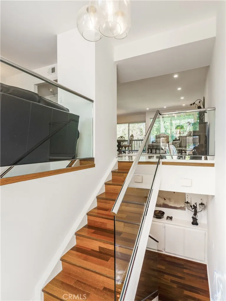 Nestled in the prestigious Terraces community, this home is located within a 24-hour guard-gated neighborhood offering an abundance of greenery and many amenities. Privately situated on a quiet cul-de-sac and surrounded by lush greenery, the property is just moments from the community pool and offers a peaceful, park-like ambiance. The residence features numerous upgrades including; wood flooring, a remodeled kitchen with granite countertops, main-floor bathroom, downstair 2nd bathroom, smooth ceilings, recessed lighting and a newer roof. This spacious unit offers three bedrooms and three full bathrooms, plus a versatile den, along with a large private patio overlooking serene greenbelt views from the breakfast area, dining room, and living room. The spacious primary suite include two walk-in closets. One bedroom is conveniently located on the main floor with a full bath nearby. The main-floor den can be easily converted into a fourth bedroom. A separate dining room adds to the homes functionality and appeal. Centrally located in the heart of the Palos Verdes Peninsula, this home provides convenient access to Palos Verdes Peninsula High School, Ridgecrest Intermediate School, the local library, Highridge Park, and a variety of shopping and dining options.