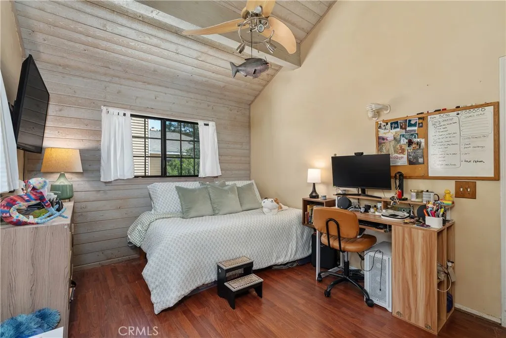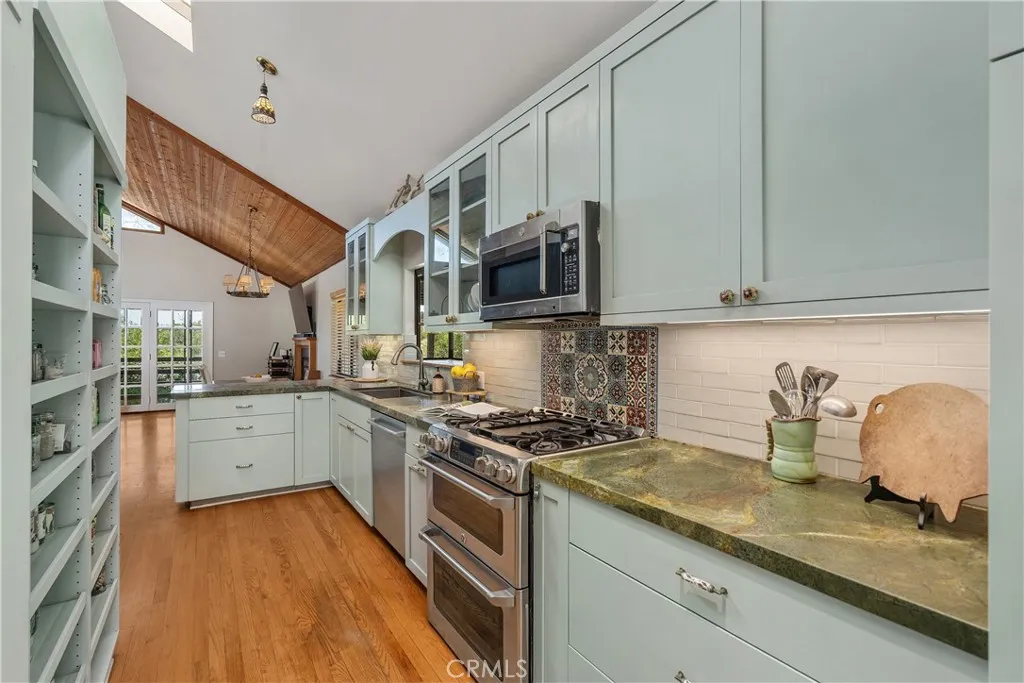 Experience tranquil hillside living in this beautifully updated two-story home nestled in the highly coveted community of Chatsworth Lake Manor, a neighborhood where properties seldom become available. Surrounded by rugged natural beauty, this inviting residence blends charm, character, and inspiring views into a warm and welcoming retreat. The home features vaulted and beamed ceilings, abundant natural light, and an effortless indoor-outdoor flow. The spacious great room opens to a wrap-around balcony and expansive deck, offering sweeping views of the surrounding hillsidesan ideal setting for morning coffee, evening sunsets, or gatherings under the stars. The remodeled kitchen showcases modern finishes, newer appliances, including wine refrigerator, and a unique chalkboard wall that adds both charm and functionality, plus beautiful Italian "Golden Lightning" granite. Just off the kitchen, a fully enclosed light-filled patio which has been transformed into a versatile studioperfect for artists, remote work, or quiet contemplation. The first-floor primary bedroom offers convenience and privacy with an adjacent updated bathroom(2024) with bidet, while the second floor includes two additional bedrooms with high ceilings, and recently renovated bathroom (2025). Additional updates include a newer roof (2022), central air and heat, and a relaxing spa installed in 2021. A spacious driveway provides plentiful parking without the restrictions of an HOA. Outdoors, mature trees, including avocado, nectarine, Meyer lemon and orange trees, water-wise plants, brick-lined garden beds, and